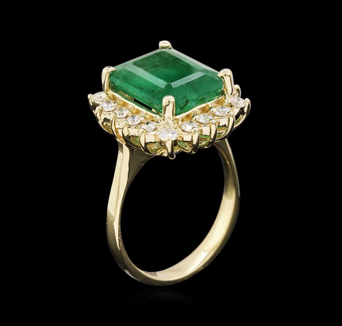 One ring featuring: 14KT yellow gold weighing 5.43 grams containing one emerald with a total weight of 4.15ct and diamonds with a total weight of .52ct.