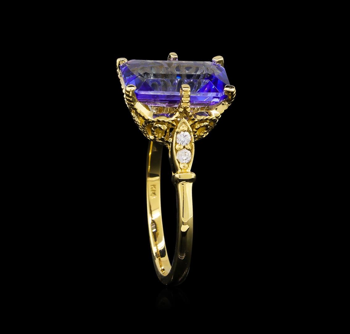 One ring featuring: 14KT yellow gold weighing 3.58 grams containing one tanzanite with a total weight of 4.15ct and side diamonds with a total weight of 0.10ct.