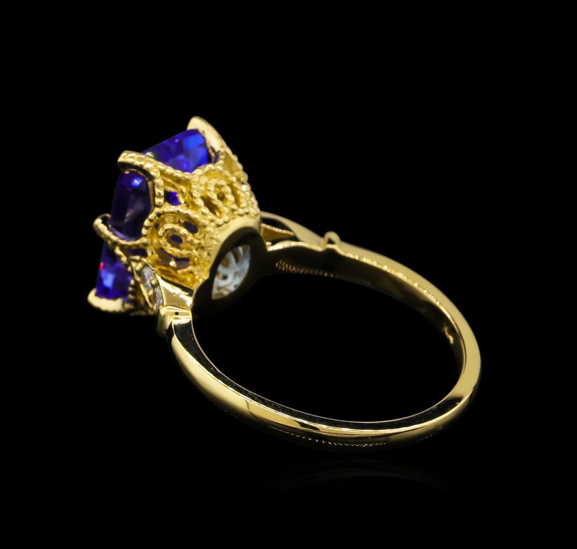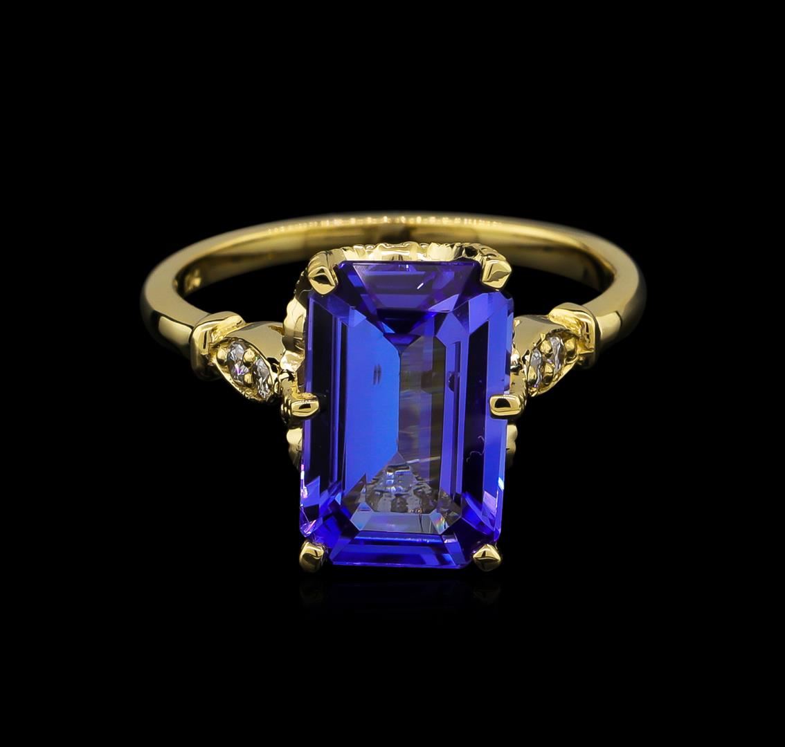 One ring featuring: 14KT yellow gold weighing 3.58 grams containing one tanzanite with a total weight of 4.15ct and side diamonds with a total weight of 0.10ct.
