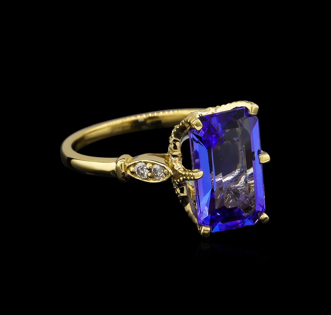 One ring featuring: 14KT yellow gold weighing 3.58 grams containing one tanzanite with a total weight of 4.15ct and side diamonds with a total weight of 0.10ct.