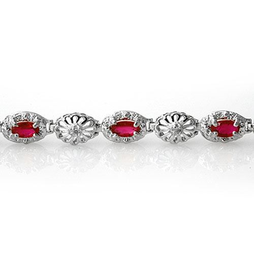 REF-63K6W -14303 ---- 4.17 CTW Ruby & Diamond Bracelet 14K White Gold ---- Luxury Designer Brand Bracelet Appraised at $4,550 Certificate Number US14303 14k White gold, Bracelet Size is 7 Inches, Bracelet measuring approx. 7" x 1/4", weighing in total approx. 8.307 grams. Made in the USA and is stamped 14k, Main stone 4.15 carat total weight containing 11 pieces of Mid-Opaque-Deep Red color with AAA quality Oval shape cut Ruby , Stone #2 0.02 carat total weight containing 3 pieces of H-I color with VS/SI quality Round shape cut Diamond