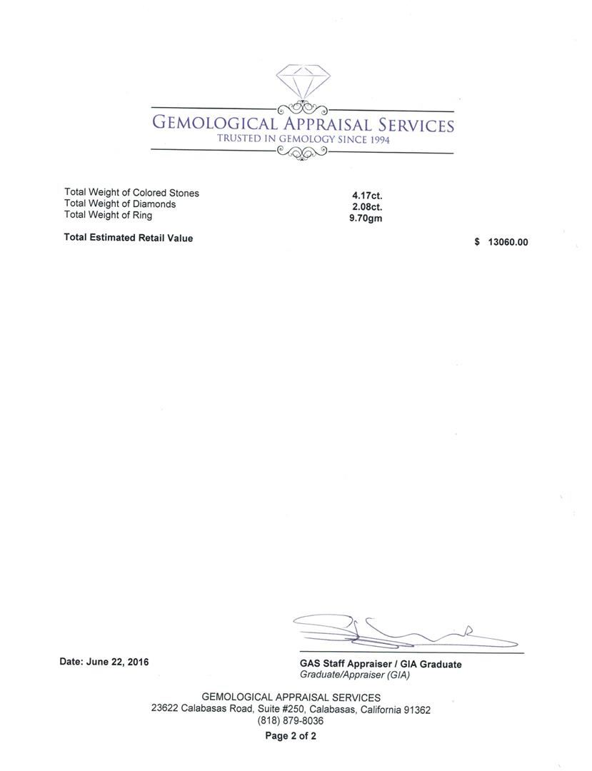 Not all Jewelry, watches or loose stones are appraised and the appraisals are provided for bidders only in certain instances at the discretion of SAA. Our appraisals are conducted by independent third-party appraisal firms. Such firms may be certified GIA Gemologists or have education in the industry or alternative certifications. Appraisals should be used for verification of gemstone and/or metal weight, size, and grade only, not actual value for resale or insurance purposes. Appraisal value should be not considered for actual value, as price varies greatly from retail locations and other merchants in different geographic locations. All Items auctioned by SAA should not be purchased with a view or expectation toward resale for appraisal price given, or to make a profit. The ultimate value for which an item can be resold may vary drastically from the appraisals listed by SAA.