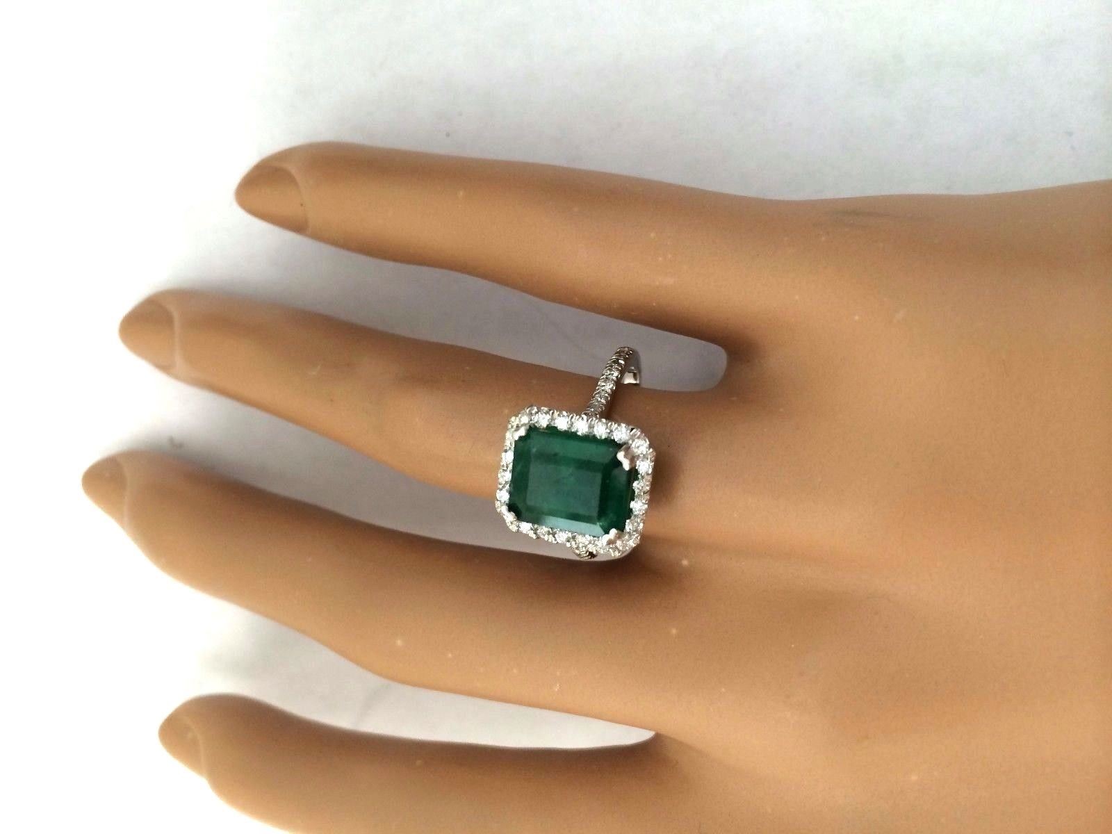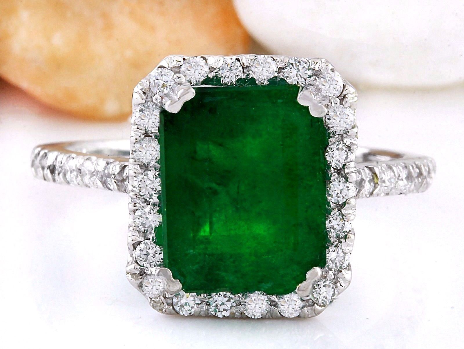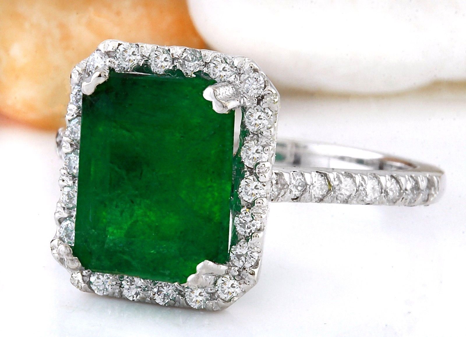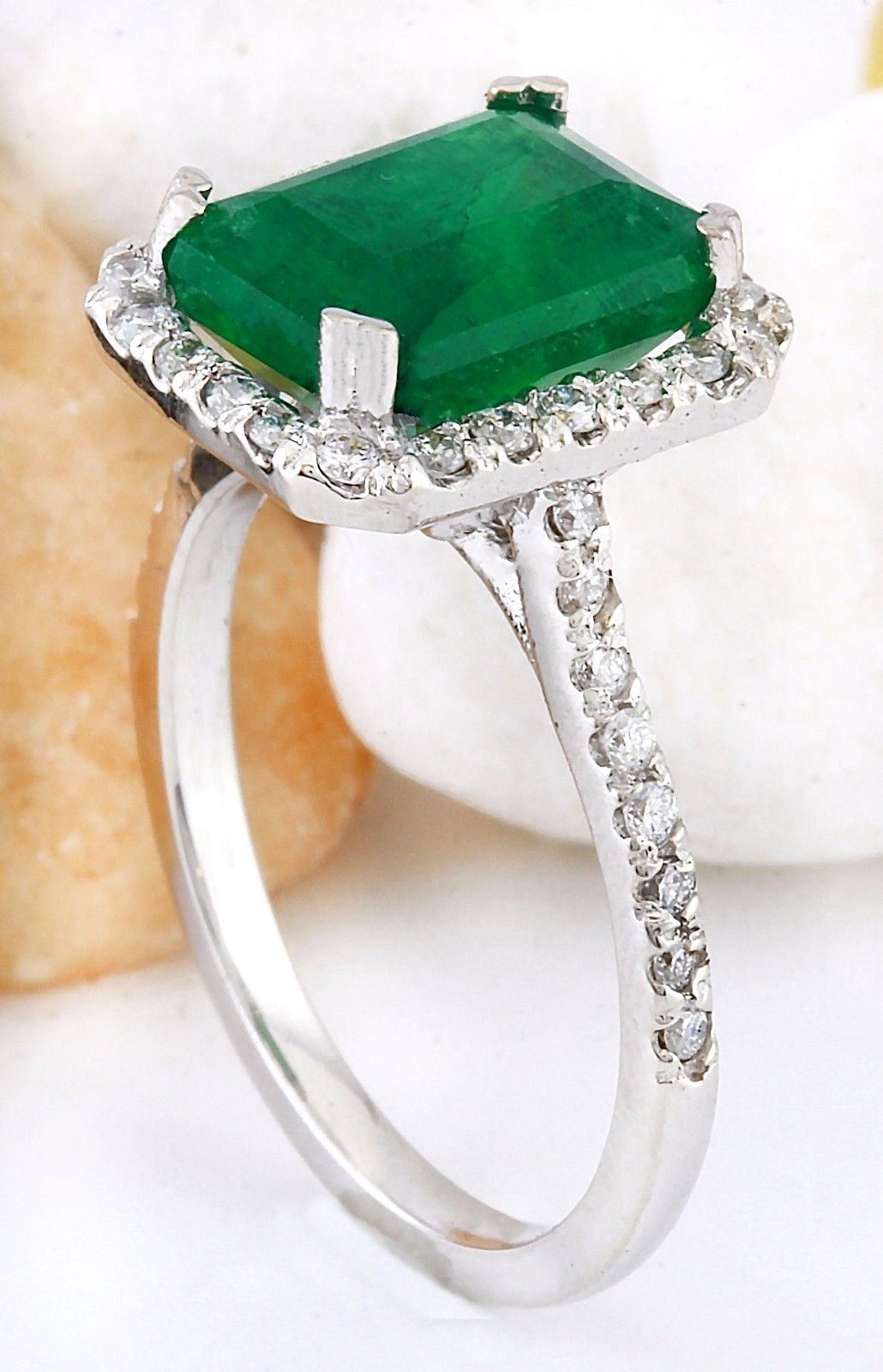4.18 Carat Natural Emerald 18K Solid White Gold Diamond Ring