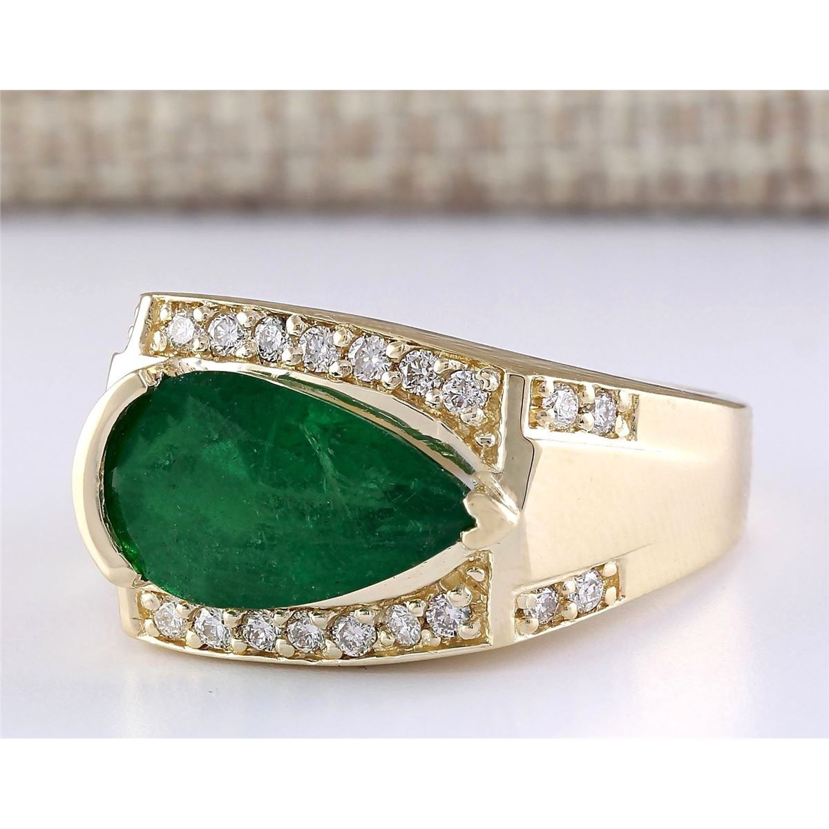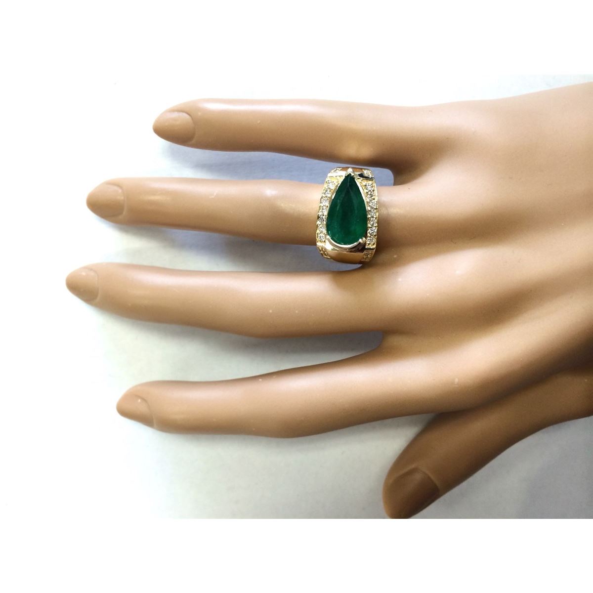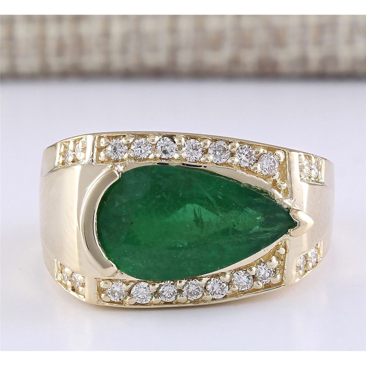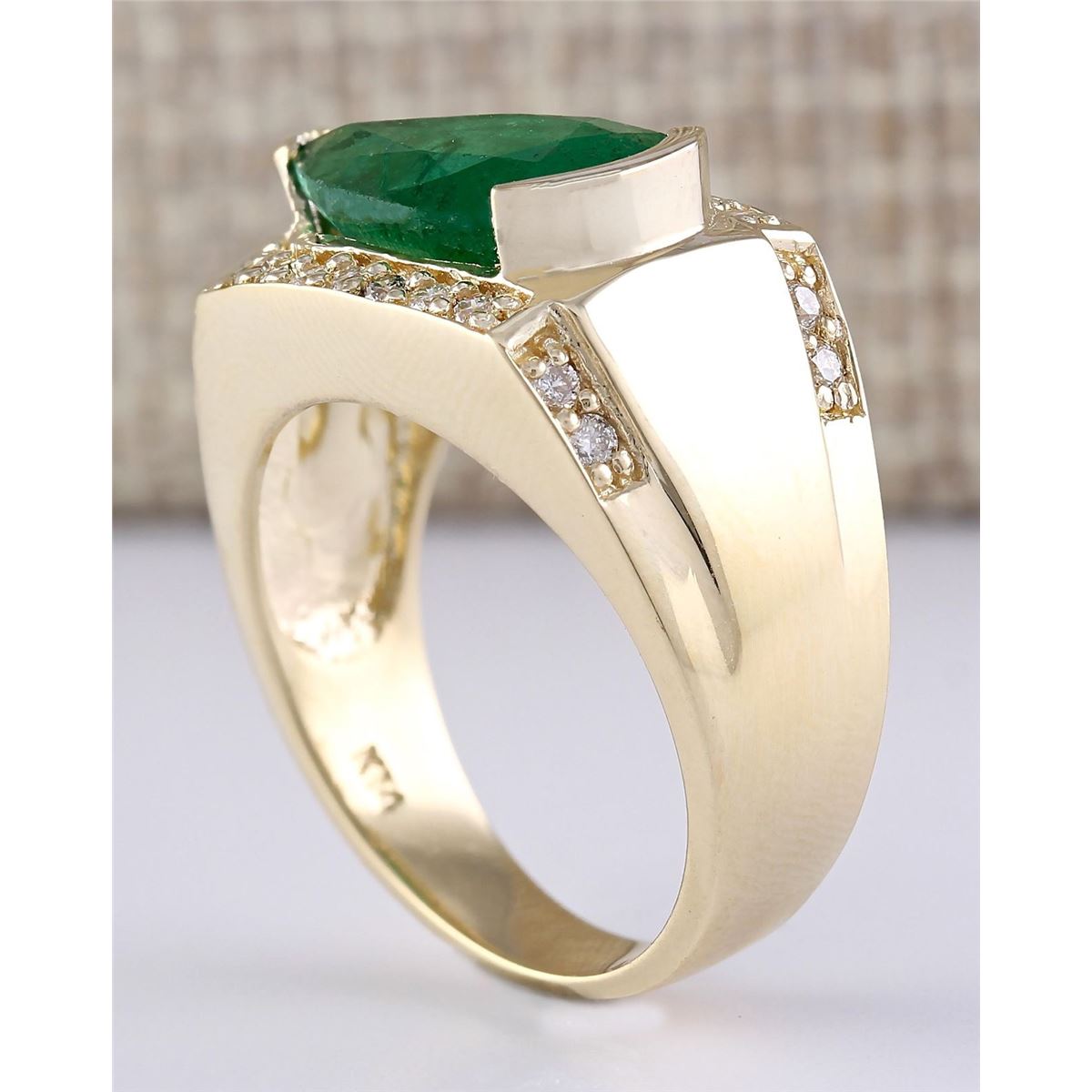 Stamped: 14K Ring Size: 7 Total Ring Weight: 8.1 Grams Diamond Weight: Total natural diamond weight is .40carat. SI1-SI2 clarity / G-H color Gemstone Weight: Total Natural Emerald Weight is 3.78ctw (Measures: 7.95x13.35mm) Main Stone Color: Green Face Measures: 12.15x15.97mm SKU: [703855]