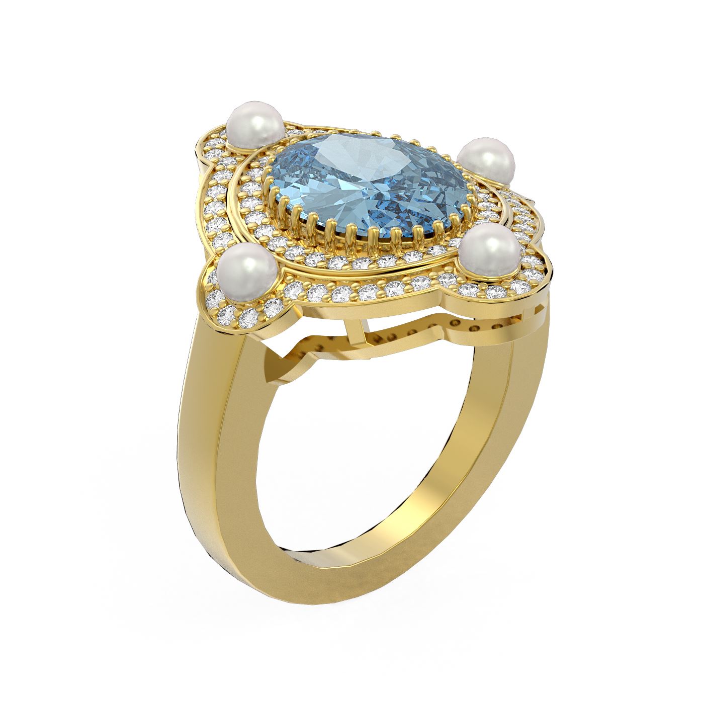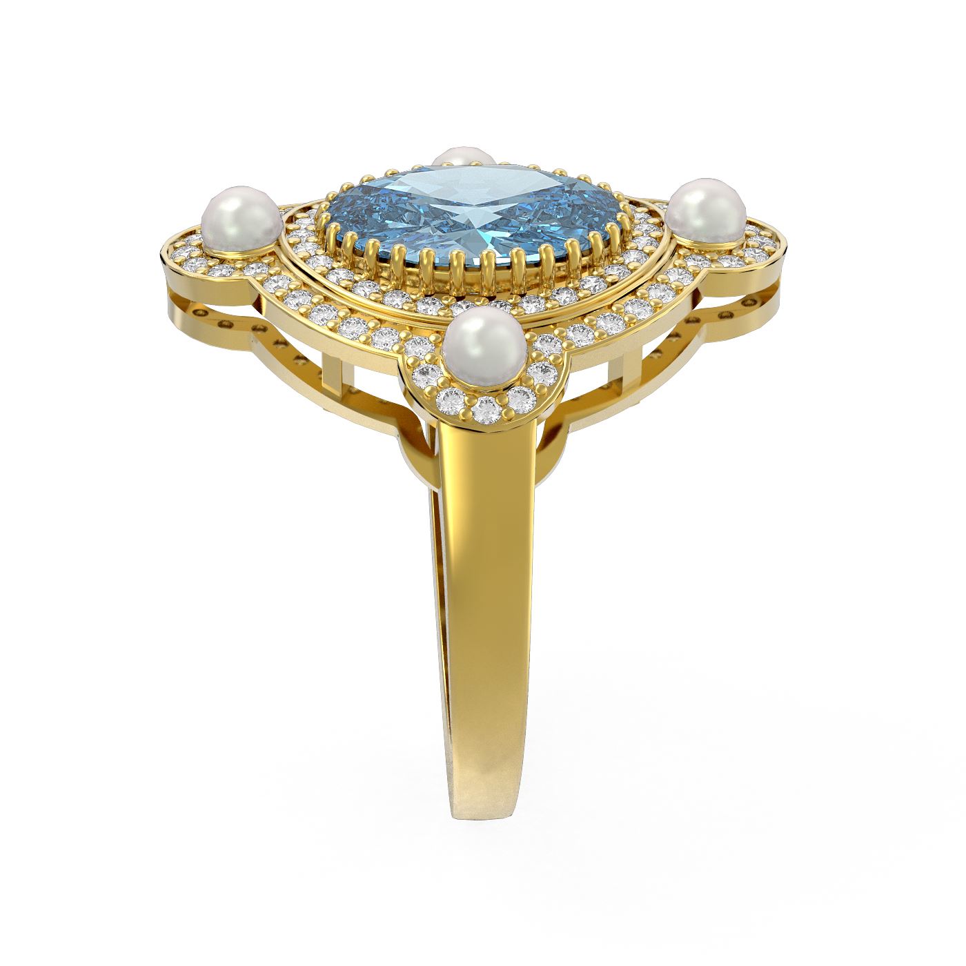 REF-161K8Y - SKU: 52578 ---- 4.18 ctw Blue Topaz & Diamond Ring 18K Yellow Gold