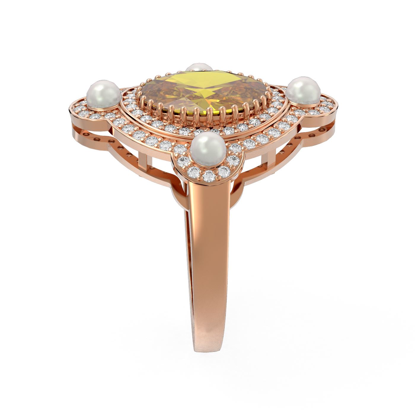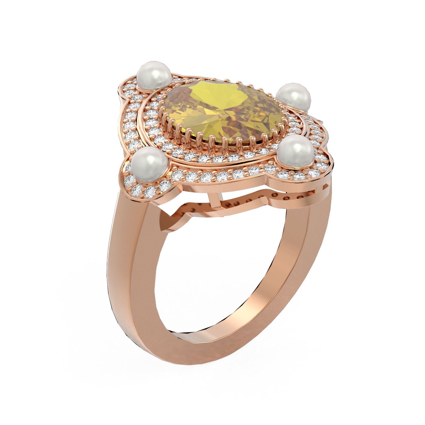 REF-161M8G - SKU: 52580 ---- 4.18 ctw Canary Citrine & Diamond Ring 18K Rose Gold