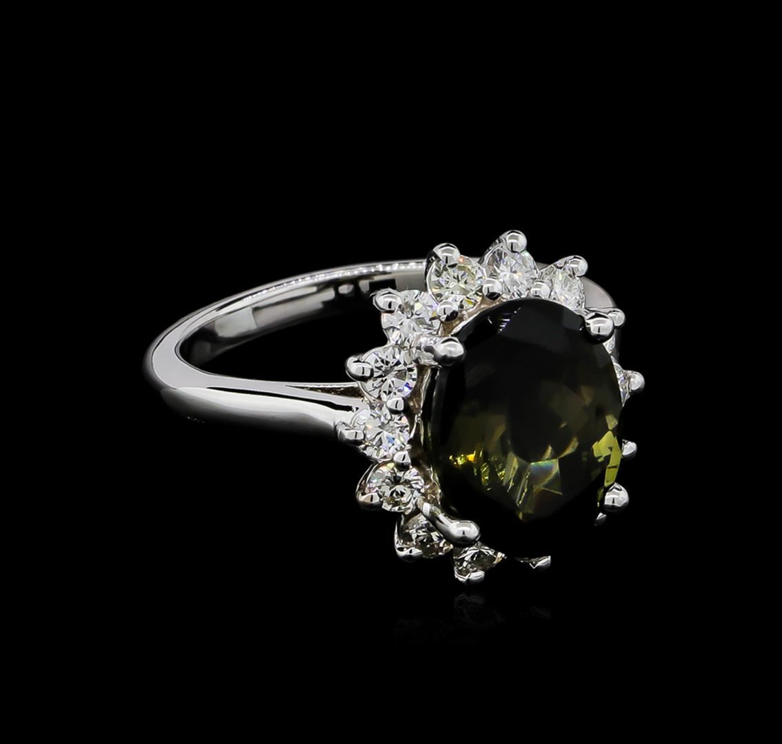 One ring featuring: 14KT white gold weighing 4.89 grams containing one green tourmaline with a total weight of 4.18ct and side diamonds with a total weight of 0.69ct.
