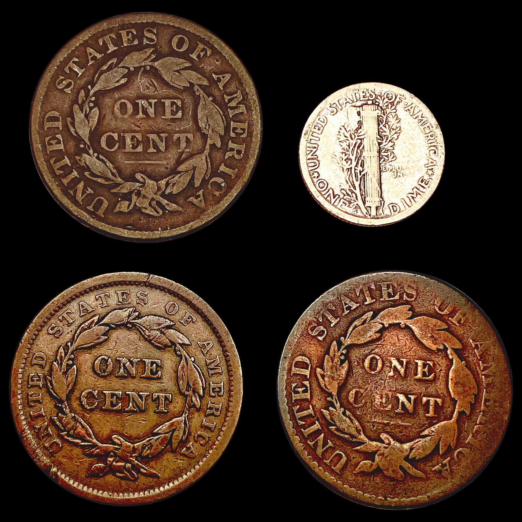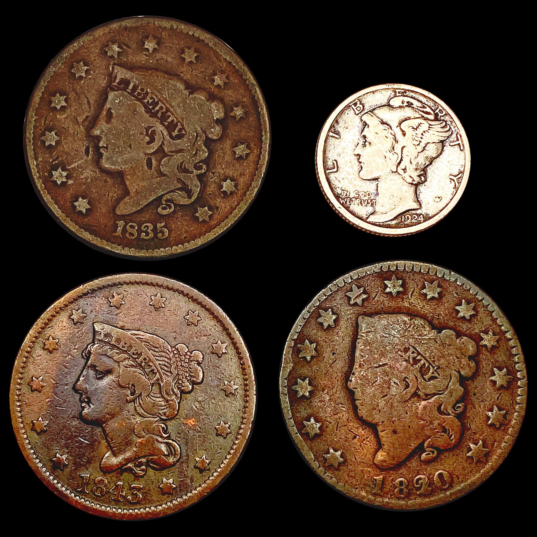 [4] 1820-1924-S [3] Large Cents, [1] Merc Dime HIGH GRADE