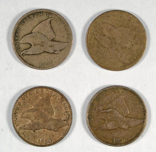 4- 1858 FLYING EAGLE CENTS "GRADING SET" (AG, GOOD, VG, FINE)