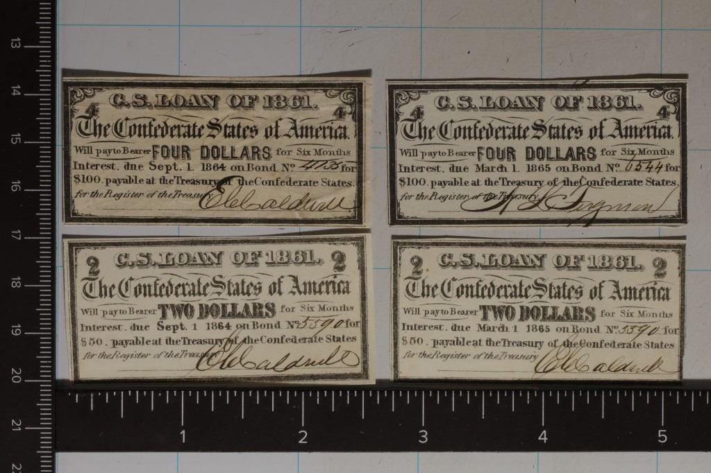 THEM ARE FOR $2 AND THE OTHER 2 ARE FOR $4. ALL PAYABLE IN 1864 AND 1865. CRISP UNC ALL OF THEM BUT ONE