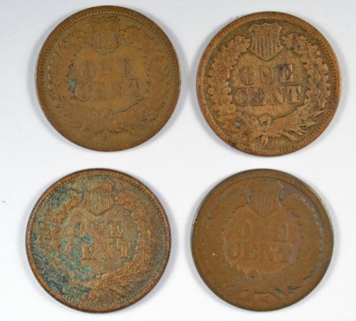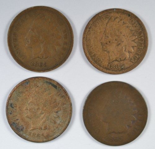4-1865 INDIAN HEAD CENTS "GRADING SET" (AG,GOOD,VG,FINE)
