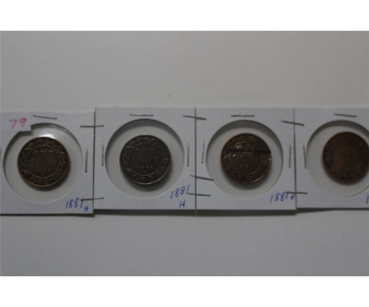 4 - 1881H Large Pennies (2 damaged)