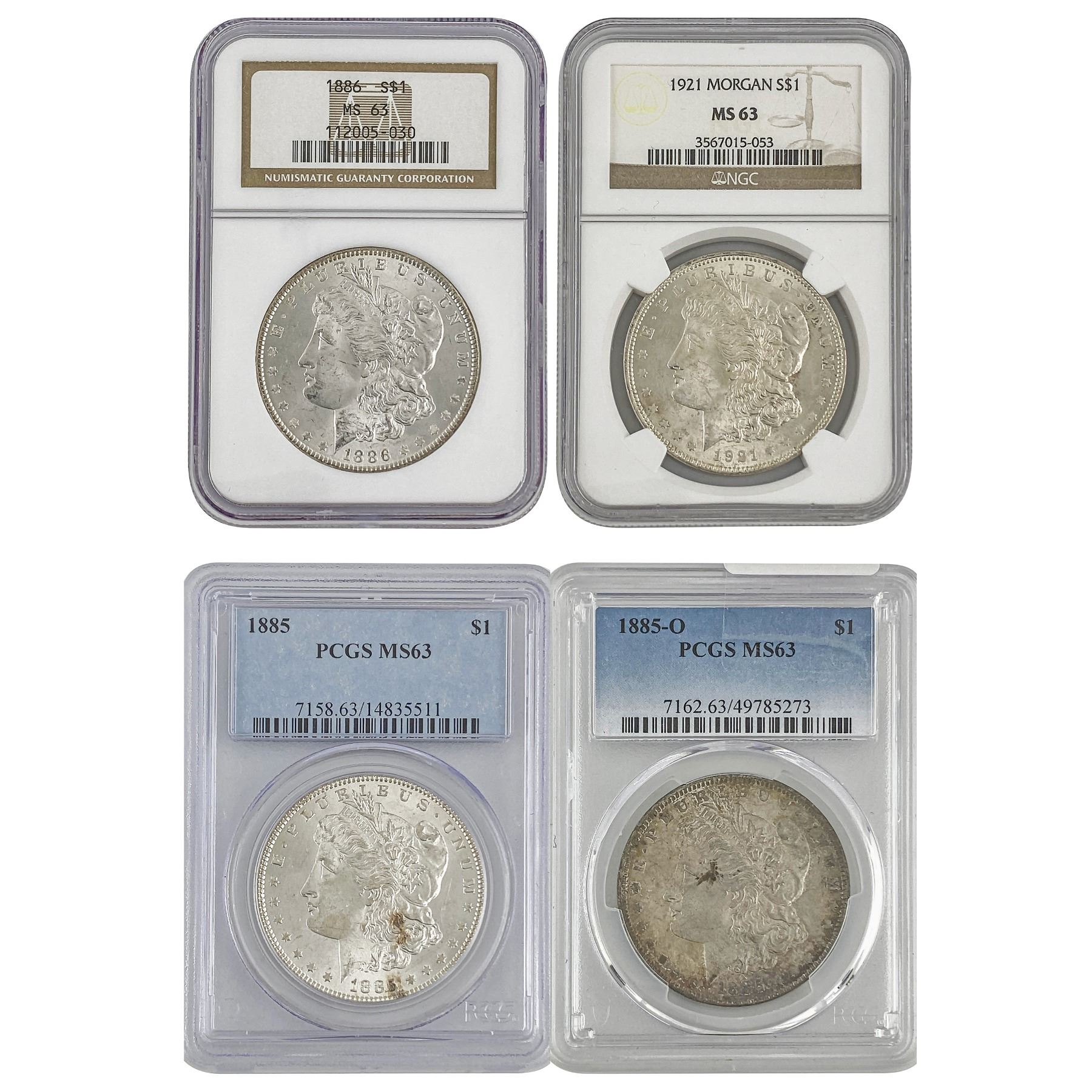 [4] 1885-1921 Morgan Silver Dollar Lot PCGS/NGC MS63