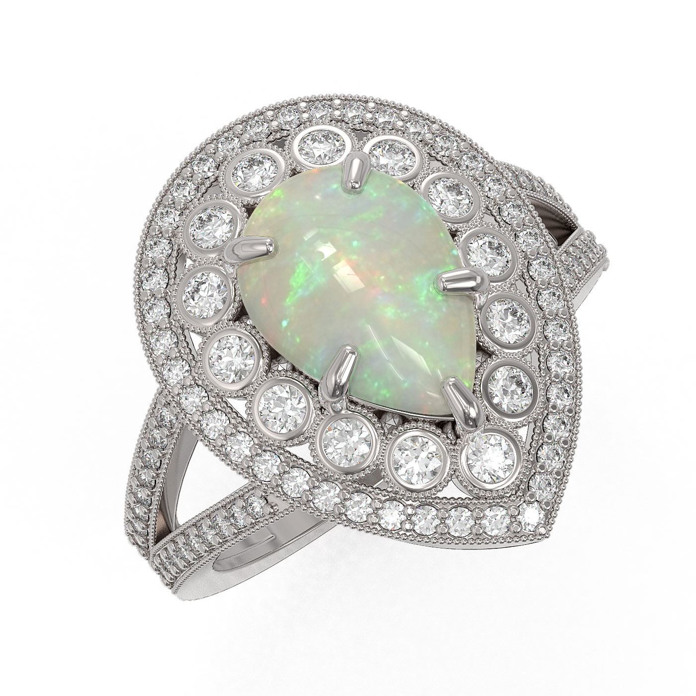 REF-148K2Y - SKU: 43136 ---- 4.19 ctw Certified Opal & Diamond Victorian Ring 14K White Gold