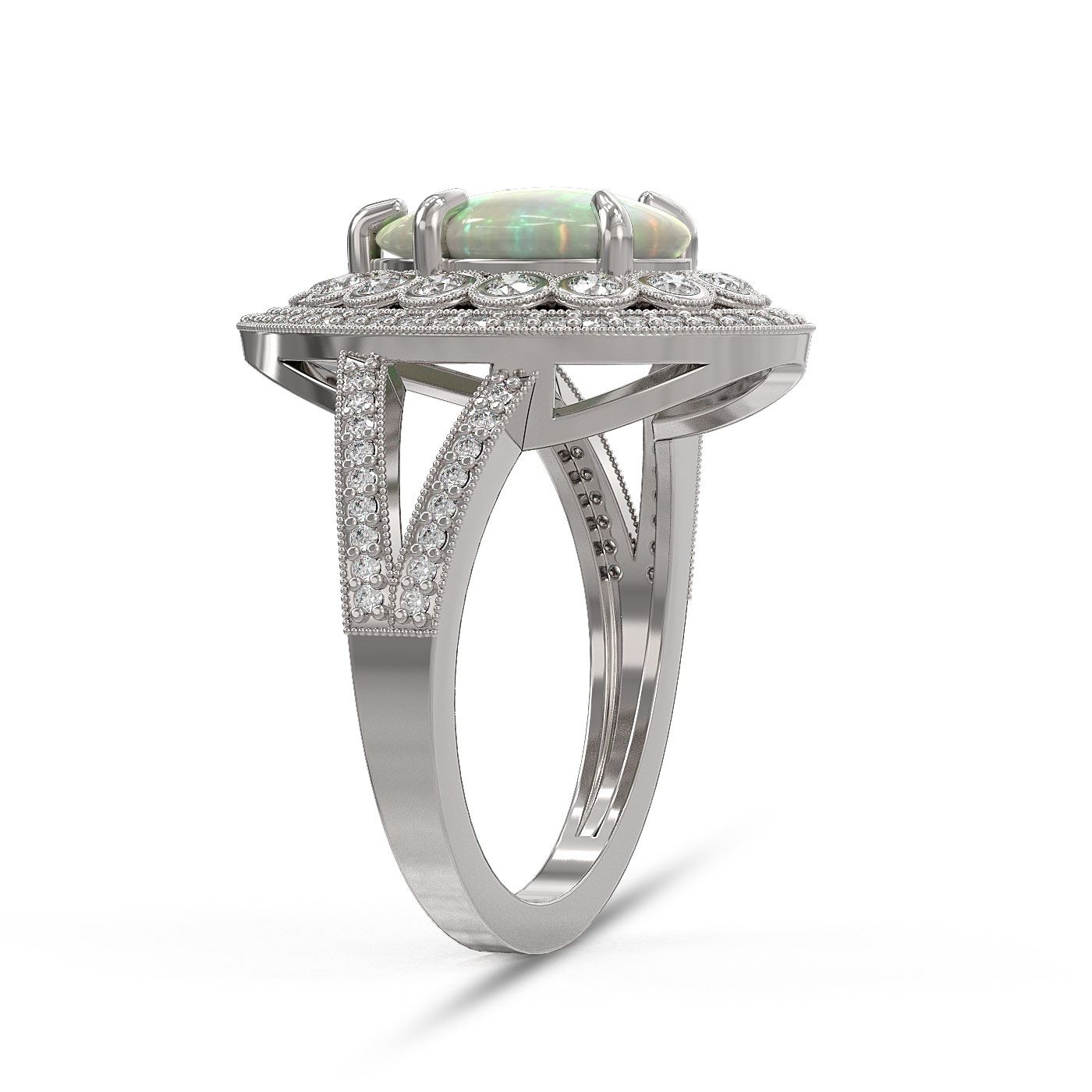 REF-148K2Y - SKU: 43136 ---- 4.19 ctw Certified Opal & Diamond Victorian Ring 14K White Gold
