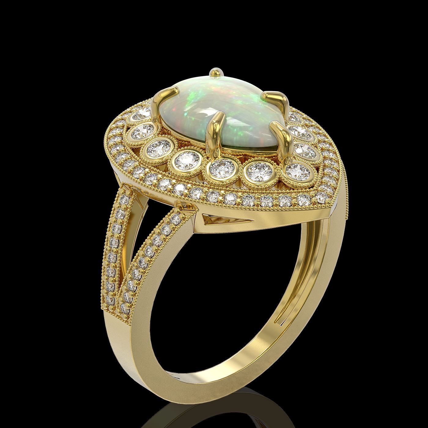 SKU: 43138 ---- 4.19 ctw Certified Opal & Diamond Victorian Ring 14K Yellow Gold