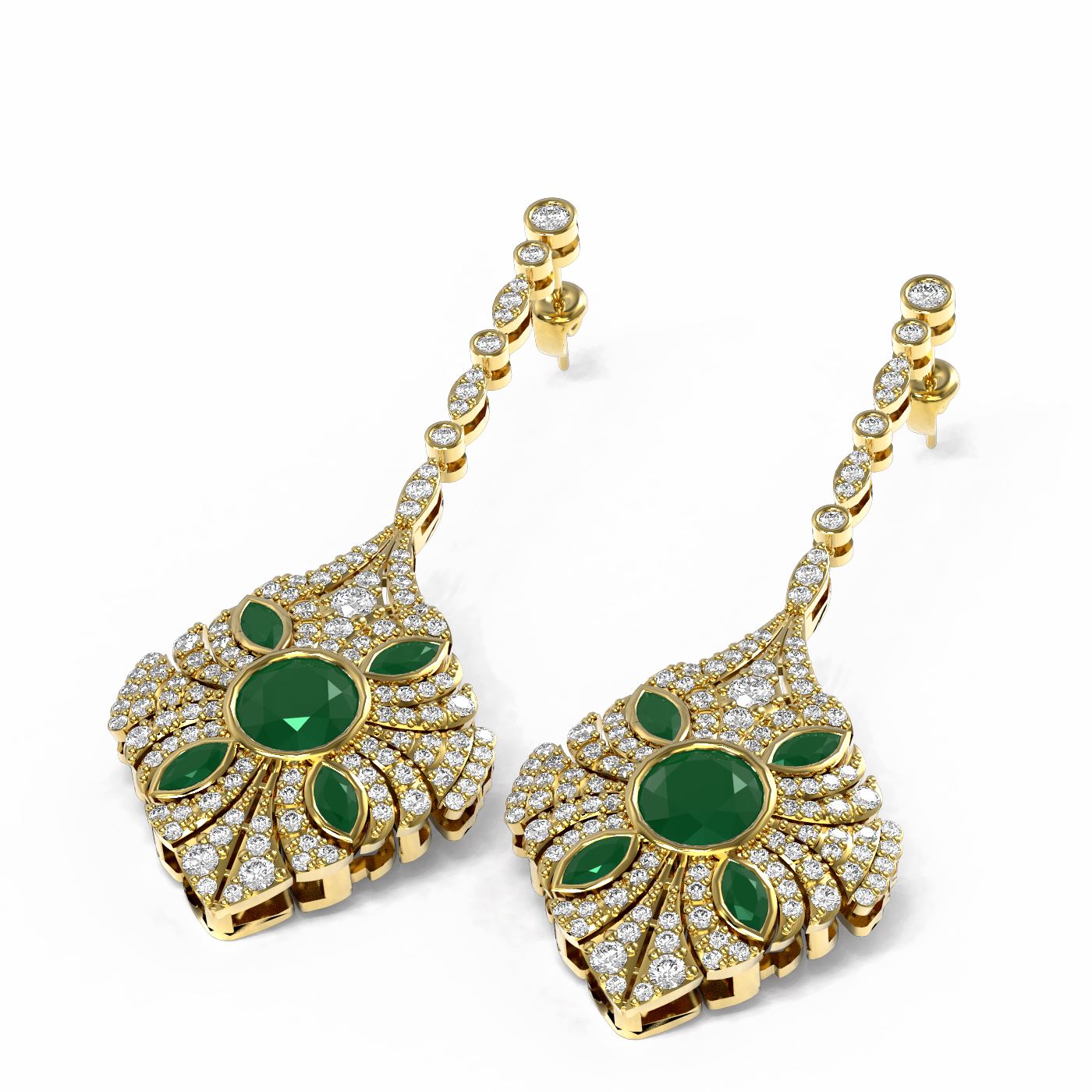 REF-311A3N - SKU: 52830 ---- 4.19 ctw Emerald & Diamond Earrings 18K Yellow Gold
