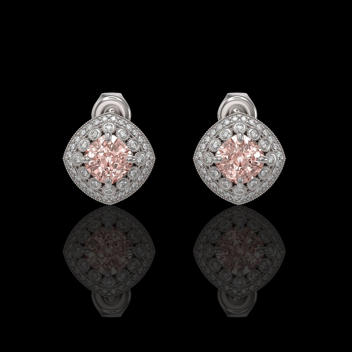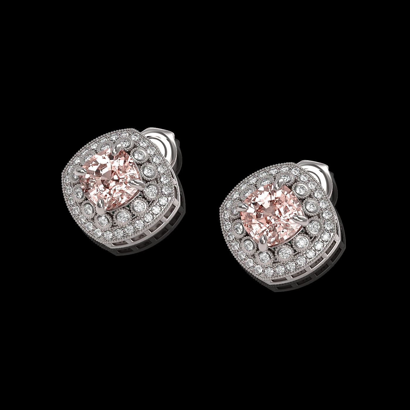 REF-142W8H - SKU: 44141 ---- 4.19 ctw Morganite & Diamond Victorian Earrings 14K White Gold