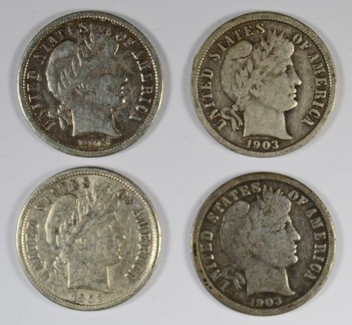 4-1903-O BARBER DIMES "GRADING SET" (GOOD,VG,FINE,VF)