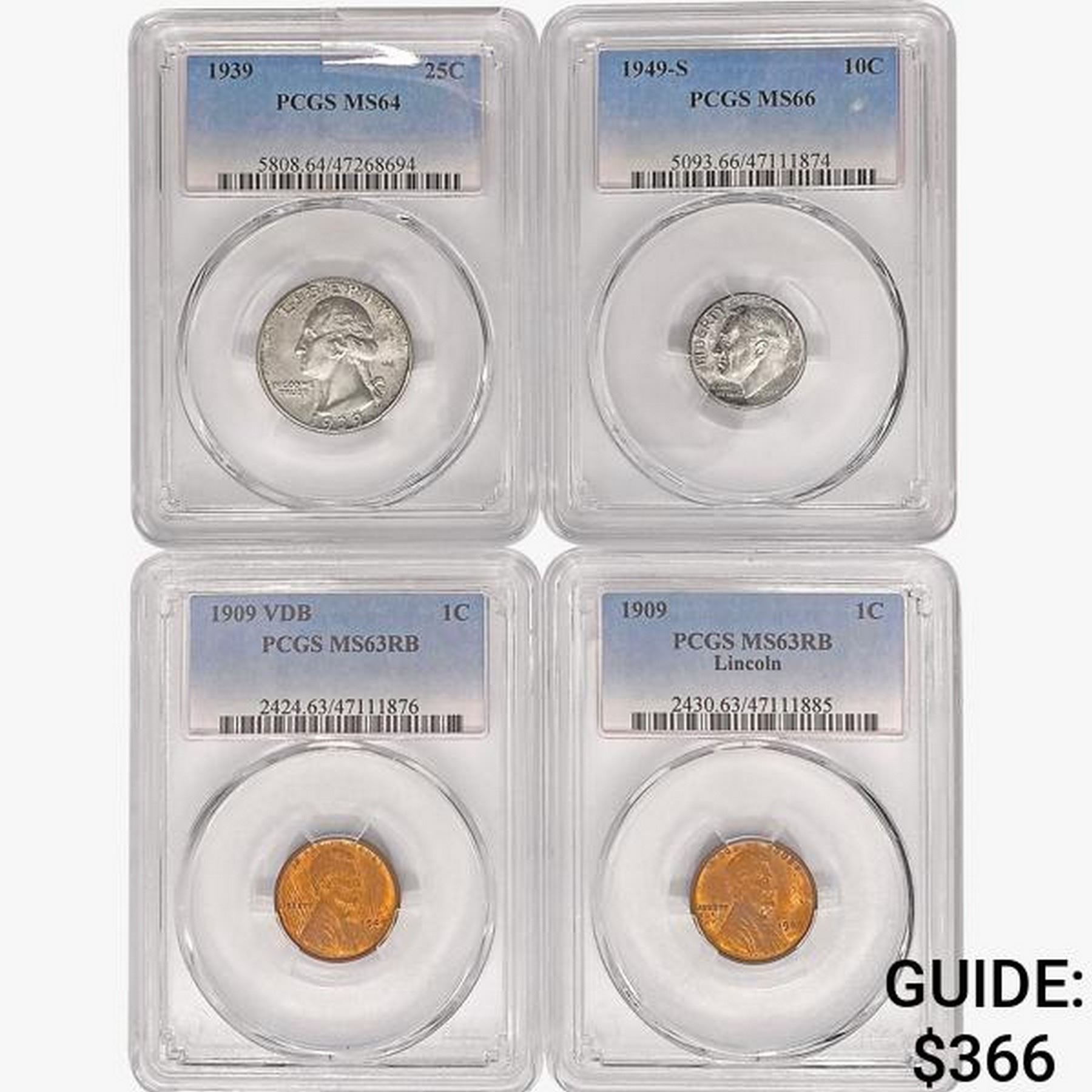 [4] 1909-1949 2 1C, 1 10C, 1 25C PCGS MS