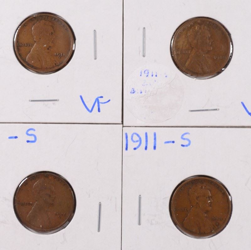 (4) 1911-S LINCOLN CENTS (GRADING SET) (VG, FINE, VF, XF)
