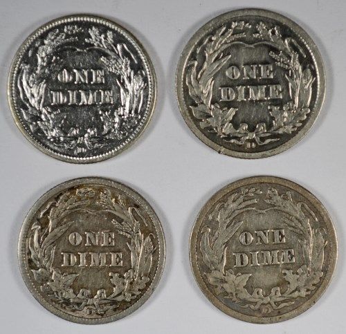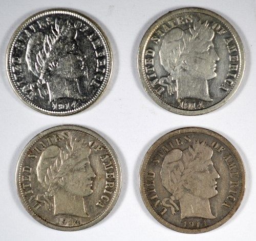 4- 1914-D BARBER DIMES "GRADING SET" (VG,FINE,VF,XF)