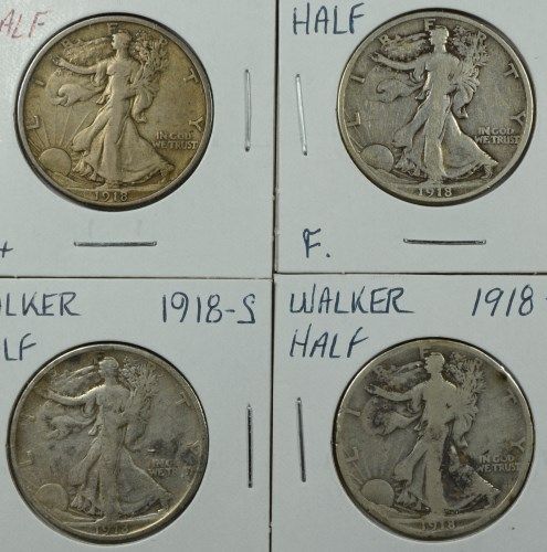 4-1918-S WALKING LIBERTY HALF DOLLARS "GRADING SET" (GOOD,VG,FINE,VF)