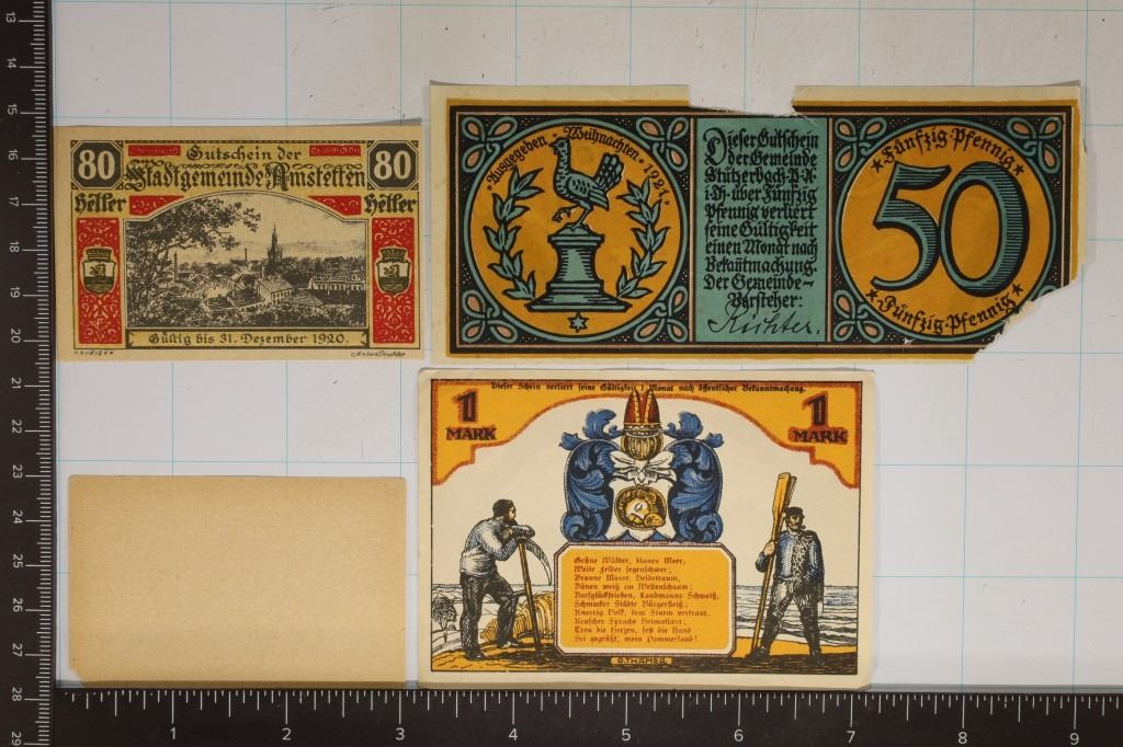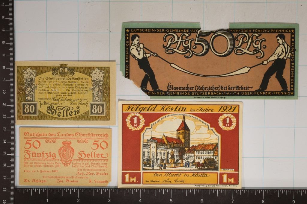 ON TOP AND BOTTON RIGHT CORNER), 1-FIFTY HELLER(SMALL TEAR BOTTOM RIGHT CORNER), 1-EIGHTY HELLER (CRISP UNC) AND 1-ONE MARK (CRISP UNC)