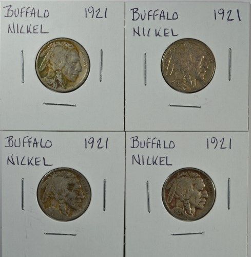 4-1921 BUFFALO NICKELS "GRADING SET" (GOOD,VG,FINE,VF)