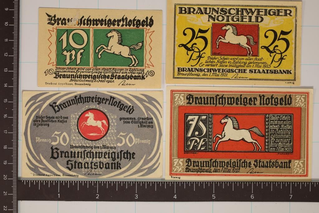 10, 25, 50 & 75 PFENNIGS. THE 10 PFENNIG HAS AN OLD TAPE MARK ON TOP LEFT AREA OF OBVERSE