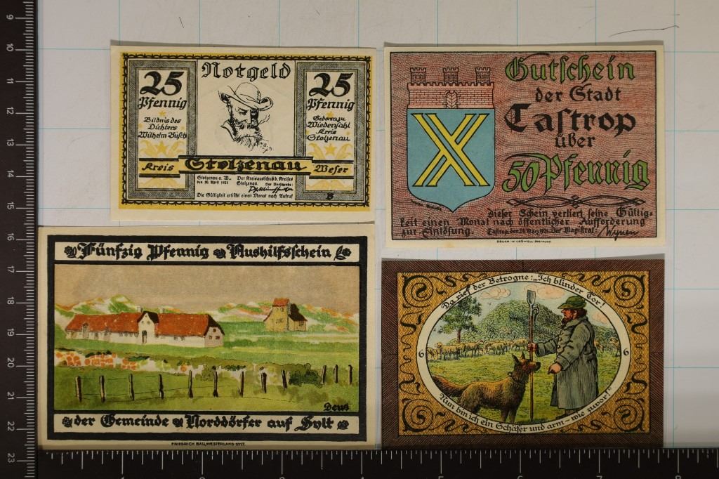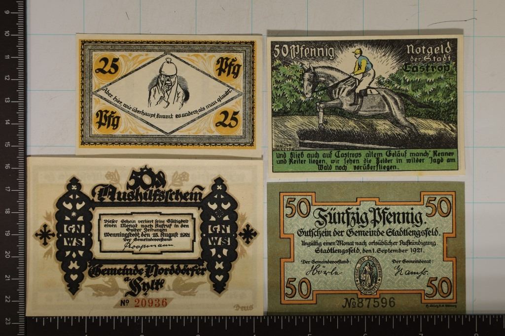 1-25 PFENNING AND 3-50 PFENNING, ALL DIFFERENT DESIGNS