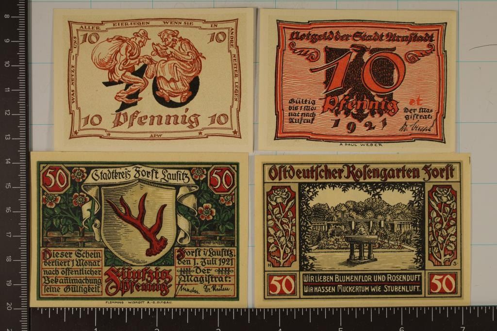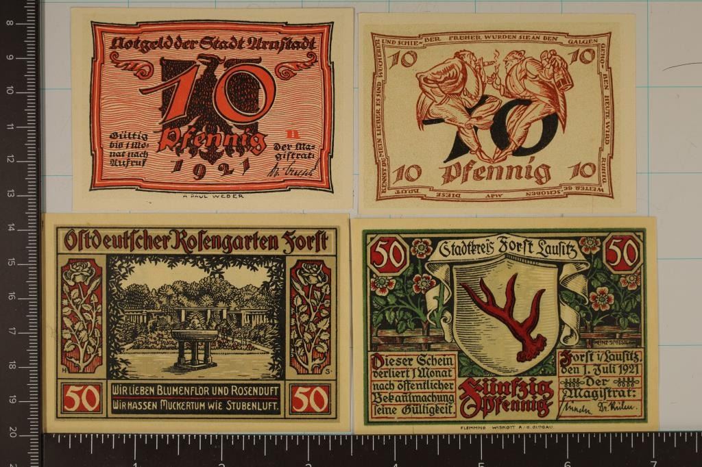 2 ROFENGARTEN 50 PFENNING BILLS. ALL ARE CRISP UNC