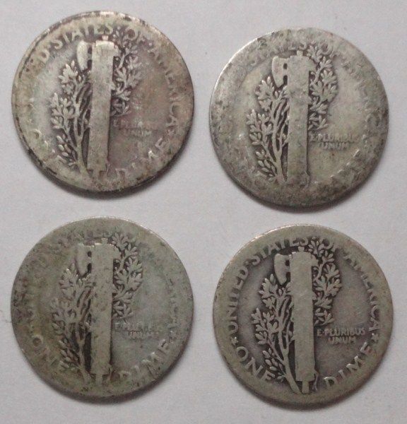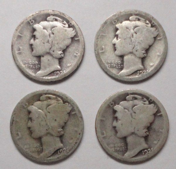 4 1921 Mercury dimes AG