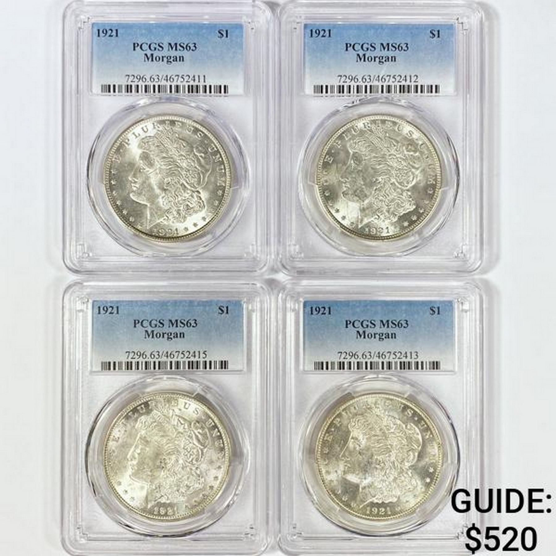 (4) 1921 Morgan Silver Dollars PCGS MS63