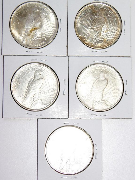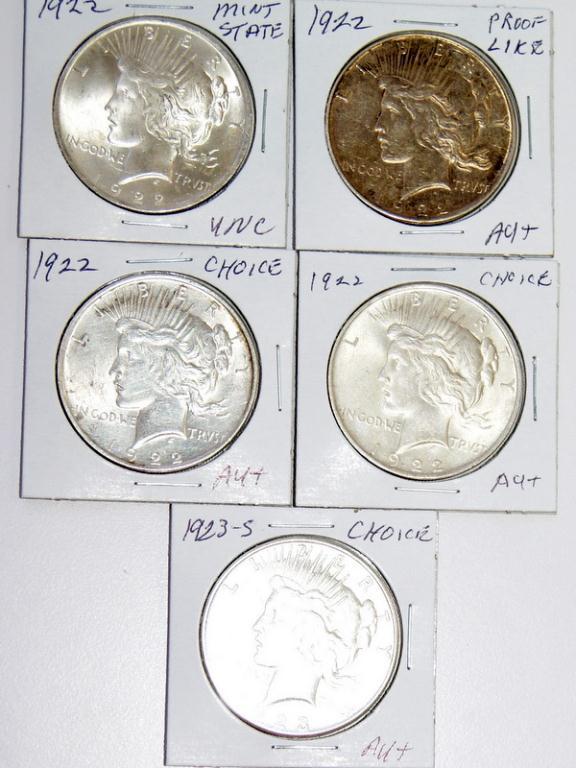 (5) Peace Dollar's - Graded Gem Mint - Almost Uncirculated - Sold Times the Money (4) 1922 and (1) 1923 S Dollar's Peace