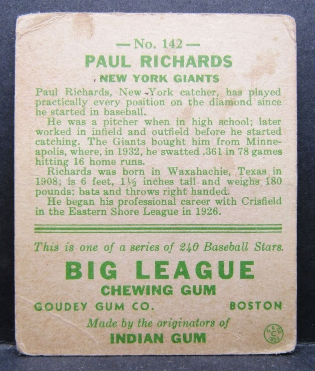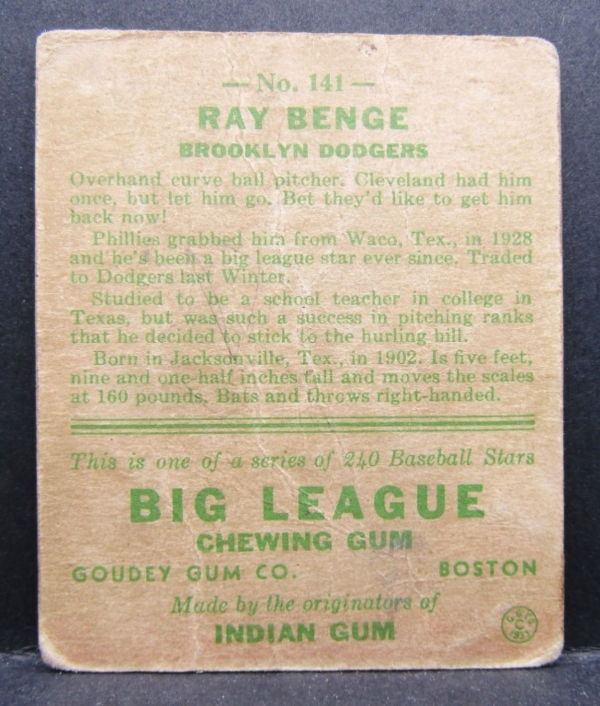 #141 BENGE, #142 RICHARDS, #146 STEWART, #147 DUROCHER - TAPE STAINS- #141 & #142 CREASES - REST NO CREASES