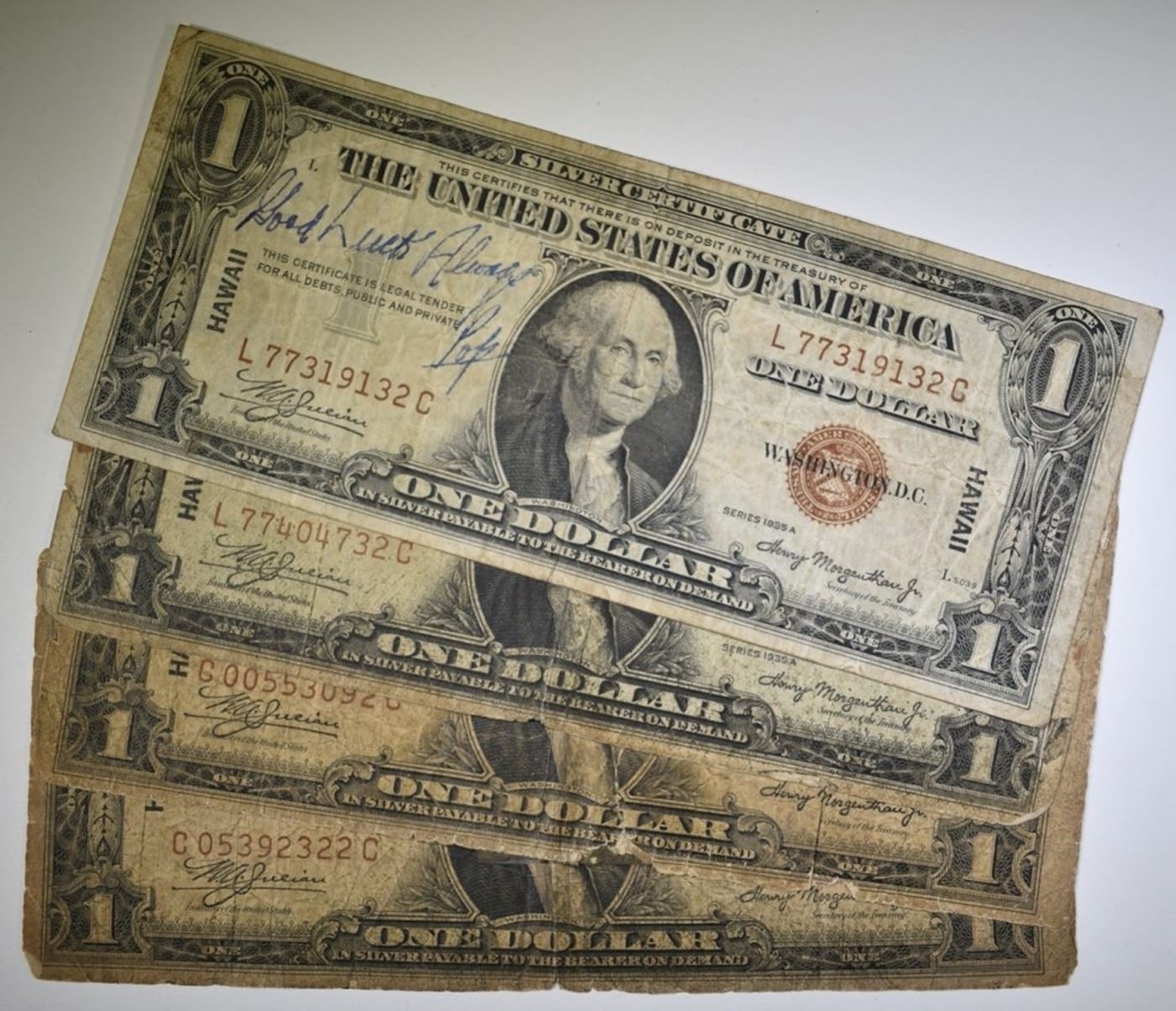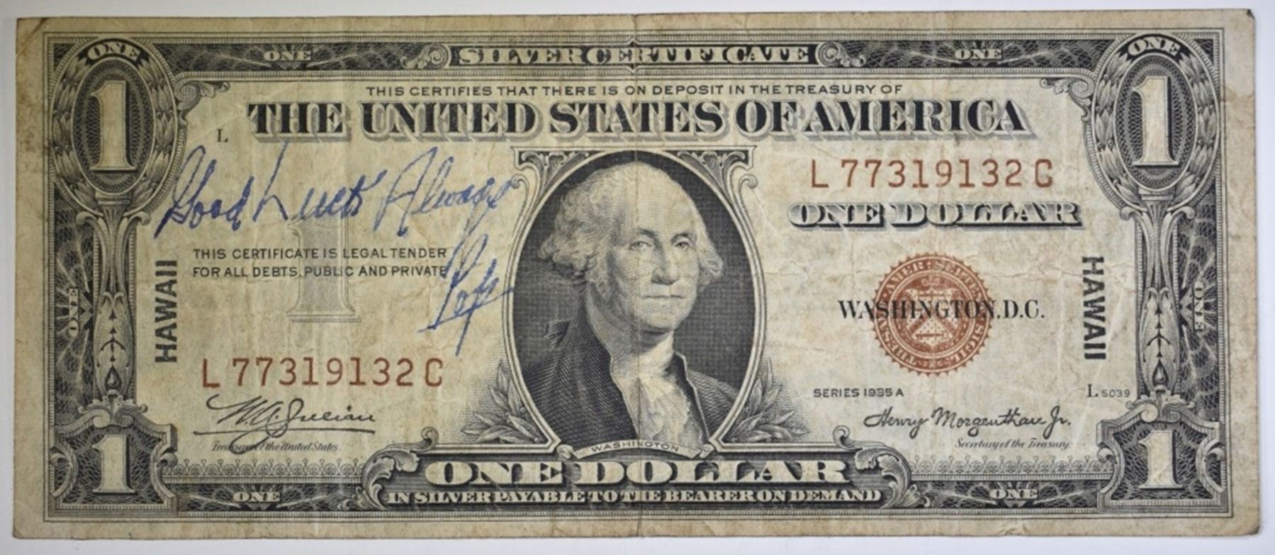 4-1935 $1 HAWAII SILVER CERTIFICATE, LOW GRADE