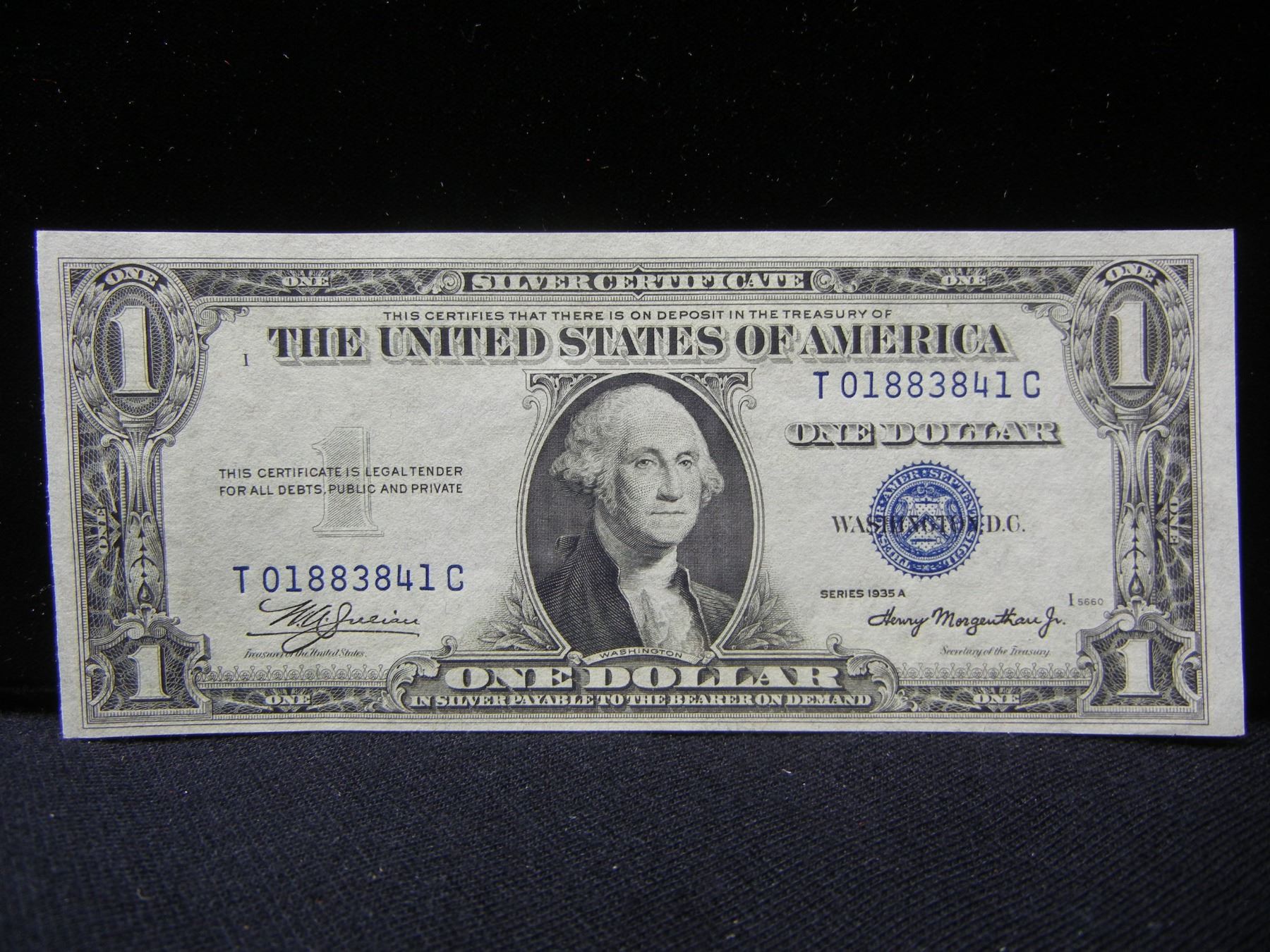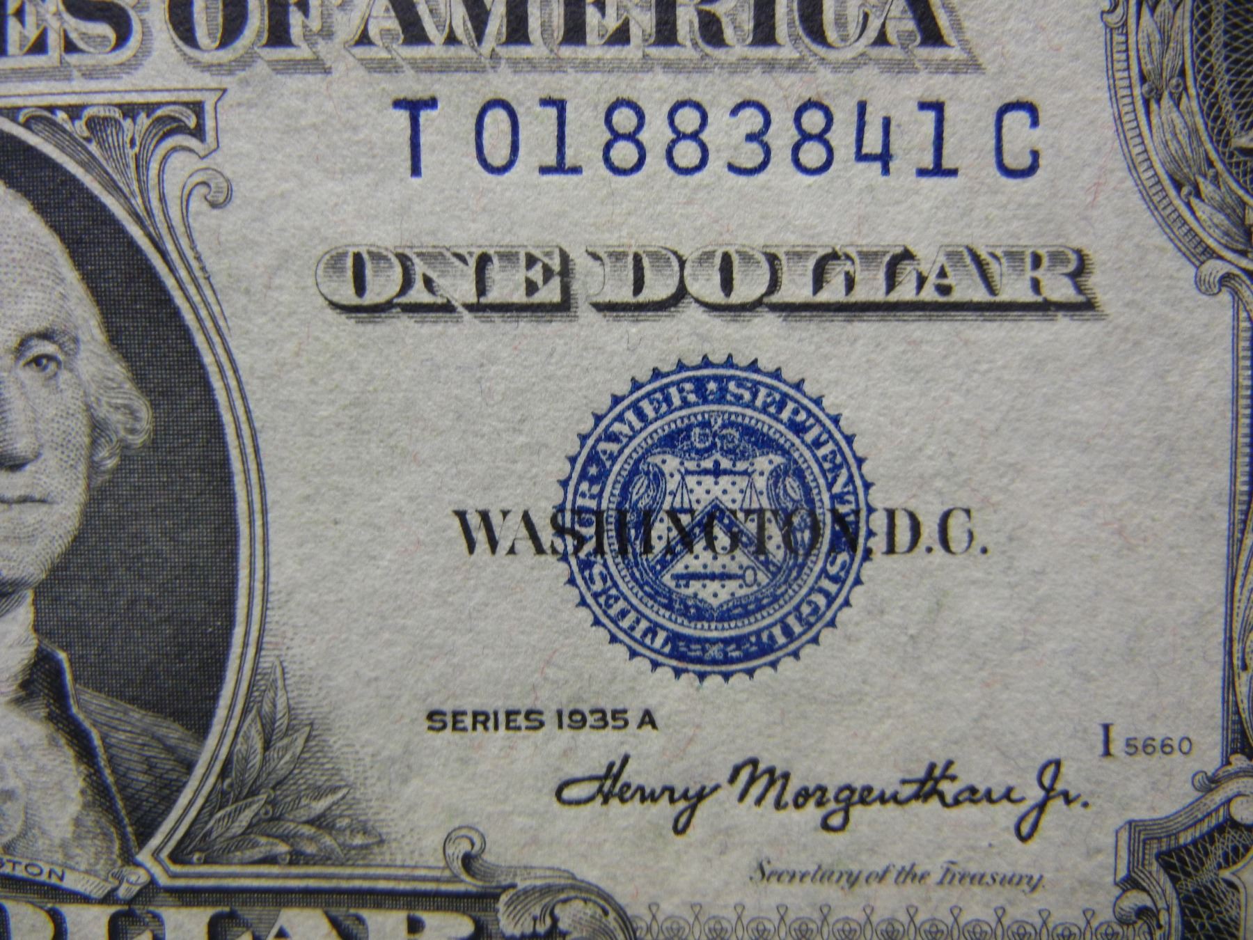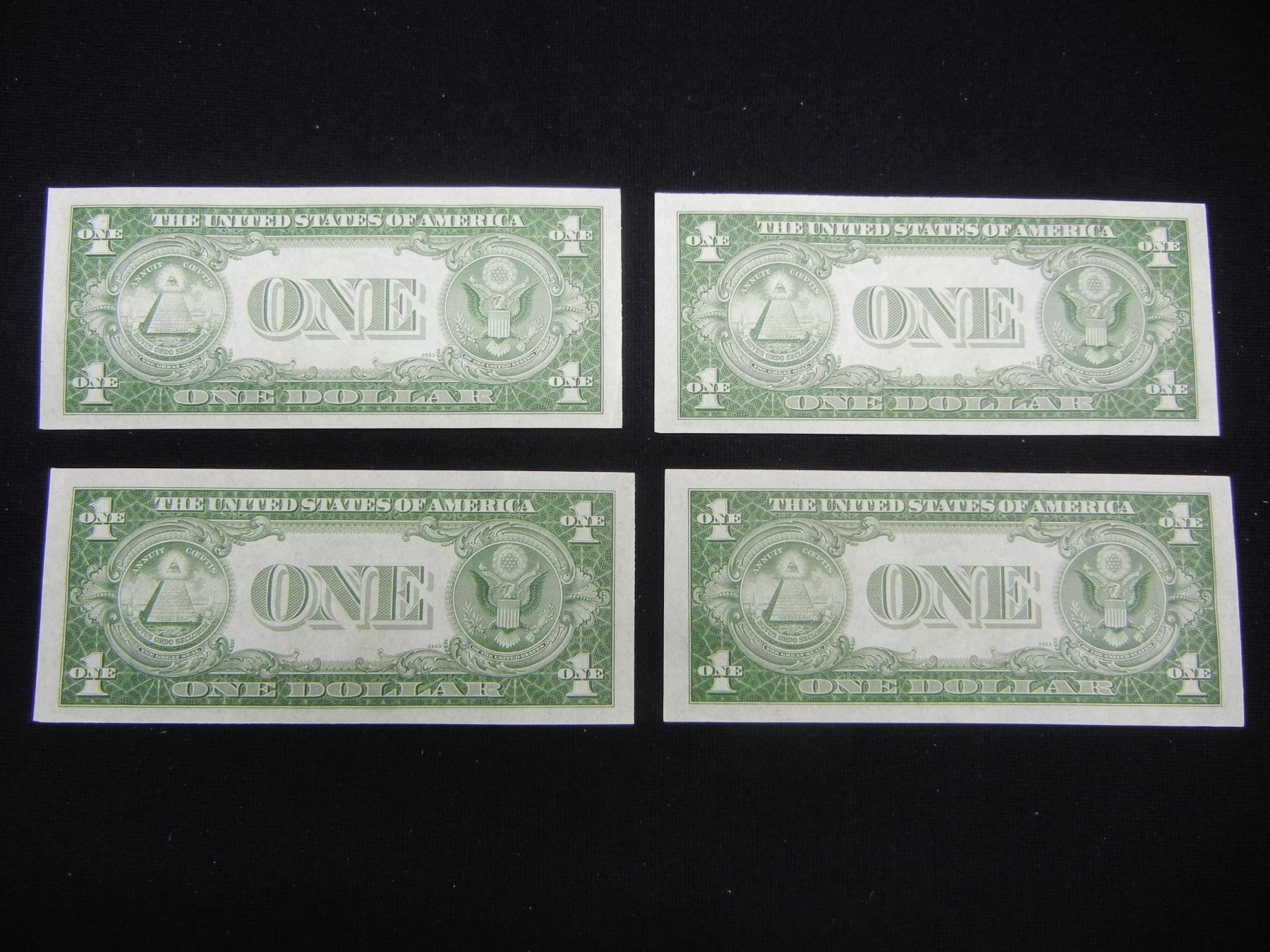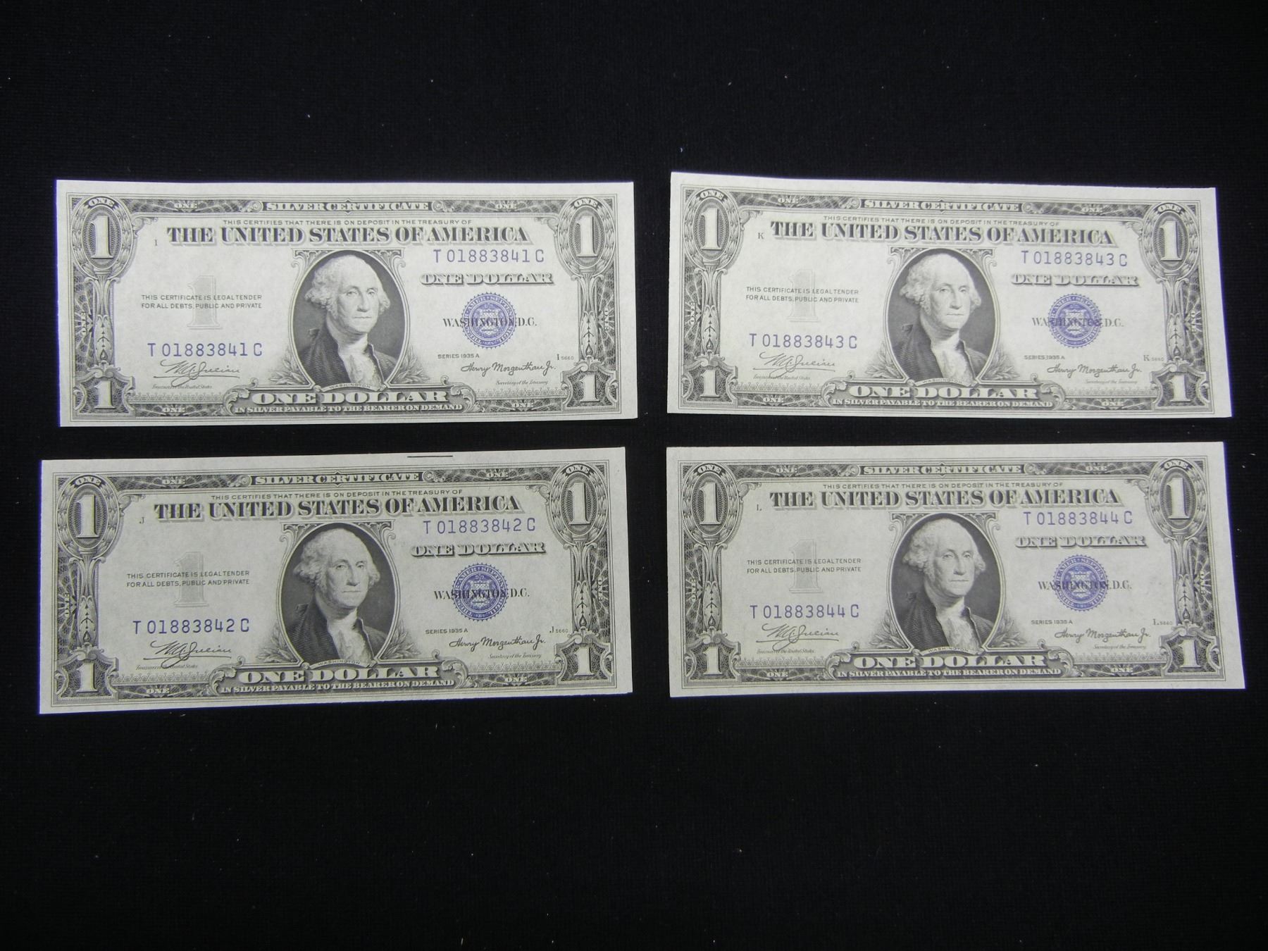 (4) 1935 A $1 Silver Certificates. Consecutive Serial #s. WWII note. GEM CU.