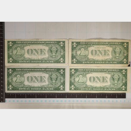 BLUE SEALS, XF+'S, ONE BILL HAS A INK STAIN ON THE CORNER