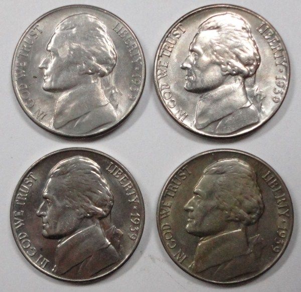 4 1939S Jefferson nickels CH BU