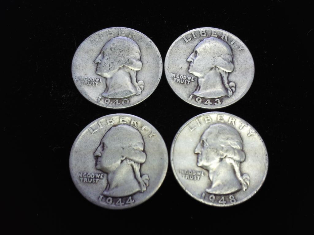 4-1940'S WASHINGTON SILVER QUARTERS