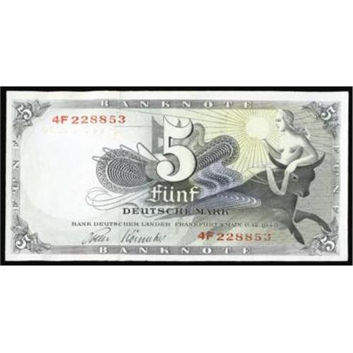 <style type="text/css"> body, td, th { font-family: Arial, Helvetica, sans-serif; font-size: 12px; color: #482424; margin: 0px; padding: 0px; } #header { background-image: url(http://www.bowersandmerena.com/ebay/images/template_v3_01.gif); clear: both; background-color: #590303; border-top-width: 2px; border-top-style: solid; border-top-color: #B38C4F; } #header #header_wrapper { height: 75px; clear: both; width: 800px; margin-right: auto; margin-left: auto; background-image: url(http://www.bowersandmerena.com/ebay/images/template_v3_03.gif); background-repeat: no-repeat; background-position: right; color: #F3EDCC; } #header #header_wrapper #header_logo { float: left; height: 75px; width: 444px; background-image: url(http://www.bowersandmerena.com/ebay/images/template_v3_02.gif); background-repeat: no-repeat; font-size: 10px; text-transform: capitalize; color: #B38C4F; } #header #header_wrapper #header_right { float: left; height: 75px; width: 356px; text-align: right; } #header #header_wrapper #header_right #headerLoginBtn { margin-bottom: 30px; } #header #header_wrapper #header_right input#txtSearch { color: #B49056; border: 1px solid #B49056; width: 175px; padding-top: 3px; padding-right: 3px; padding-bottom: 4px; padding-left: 3px; } #nav { height: 37px; background-image: url(http://www.bowersandmerena.com/ebay/images/template_v3_05.gif); clear: both; } #nav #nav_wrapper { height: 35px; width: 800px; margin-right: auto; margin-left: auto; border-left-width: 1px; border-left-style: solid; border-left-color: #B38C4F; } #nav #nav_wrapper a { padding-right: 15px; padding-left: 15px; border-right-width: 1px; border-right-style: solid; border-right-color: #B38C4F; height: 25px; padding-top: 10px; display: block; float: left; text-decoration: none; font-weight: bold; color: #5D0303; } #nav #nav_wrapper a:hover { color: #B38C4F; } #nav #nav_wrapper #search { float: right; padding-top: 7px; } #nav #nav_wrapper #search #txtSearch { font-family: Arial, Helvetica, sans-serif; font-size: 10px; text-transform: uppercase; color: #D2AE75; border: 1px solid #B38C4F; padding: 3px; } #content_bgd { background-image: url(http://www.bowersandmerena.com/ebay/images/template_v3_09.gif); background-repeat: repeat-y; background-position: center; padding-top: 15px; padding-bottom: 15px; background-color: #FBFBDB; } #content_wrapper { clear: both; height: auto; width: 800px; margin-right: auto; margin-left: auto; } .LotDetailWhite { line-height:normal; font-size:13px; font-family: arial,helvetica,sans-serif; color: White; font-weight: bold; } .LotDetailInformation { line-height:normal; font-size: 13px; font-family: arial,helvetica,sans-serif; } .LotDetailMessage { line-height:normal; font-size: 13px; font-family: arial,helvetica,sans-serif; color: red; } } tr.HeaderAuctionTitle td { color: #000000; font-weight: bold; padding: 2px; background-image: url(http://www.bowersandmerena.com/ebay/images/template_v3_05.gif); background-repeat: repeat-x; border-bottom-width: 1px; border-bottom-style: solid; border-bottom-color: #B38C4F; } table.AuctionSummary a, table.AuctionSummary a:link, table.AuctionSummary a:visited { color: #0000FF; text-decoration: none; } } td.tableHeaderLeft { border-left-width: 1px; border-left-style: solid; border-left-color: #B38C4F; } td.tableHeaderRight { border-right-width: 1px; border-right-style: solid; border-right-color: #B38C4F; } td.tableCellMiddle { border-left-width: 1px; border-left-style: solid; border-left-color: #B38C4F; border-right-width: 1px; border-right-style: solid; border-right-color: #B38C4F; padding: 5px; } tr.footer td { border-top-width: 1px; border-top-style: solid; border-top-color: #B38C4F; } </style> </head> <body> <div id="header"> <div id="header_wrapper"> <div id="header_logo"> </div> <div id="header_right"> </div> </div> </div> <div id="nav"> <div id="nav_wrapper"> <a href="http://www.bowersandmerena.com">Our eBayLive Auctions</a> <a href="#PaymentInfo">Payment Information</a> <a href="#ShippingInfo">Shipping Information</a> <a href="#About">About Bowers and Merena</a> </div> </div> <div id="content_bgd"> <div id="content_wrapper"> <table width="100%" border="0" cellpadding="5" cellspacing="0" class="AuctionSummary"> <tbody> <tr class="HeaderAuctionTitle" style="height: 25px;"> <td align="left" class="tableHeaderLeft" > </td> <td align="center" class="tableHeaderRight"> <span style="font-size: large;">Lot #2844. Germany Federal Republic. Lot of (4) 1948 5 Deutsche Mark. US Army Command. Second Issue. VF/AU.</span> </td> </tr> <tr> <td colspan="3" class="tableCellMiddle"> P-13e. This variety lacks both the stamped "B" and perforated "B" and shows the design with no interruptions. There are four total notes which quite nicely escalate upwards in grade. A Very Fine, a couple of XF notes and a blazing AU example.
