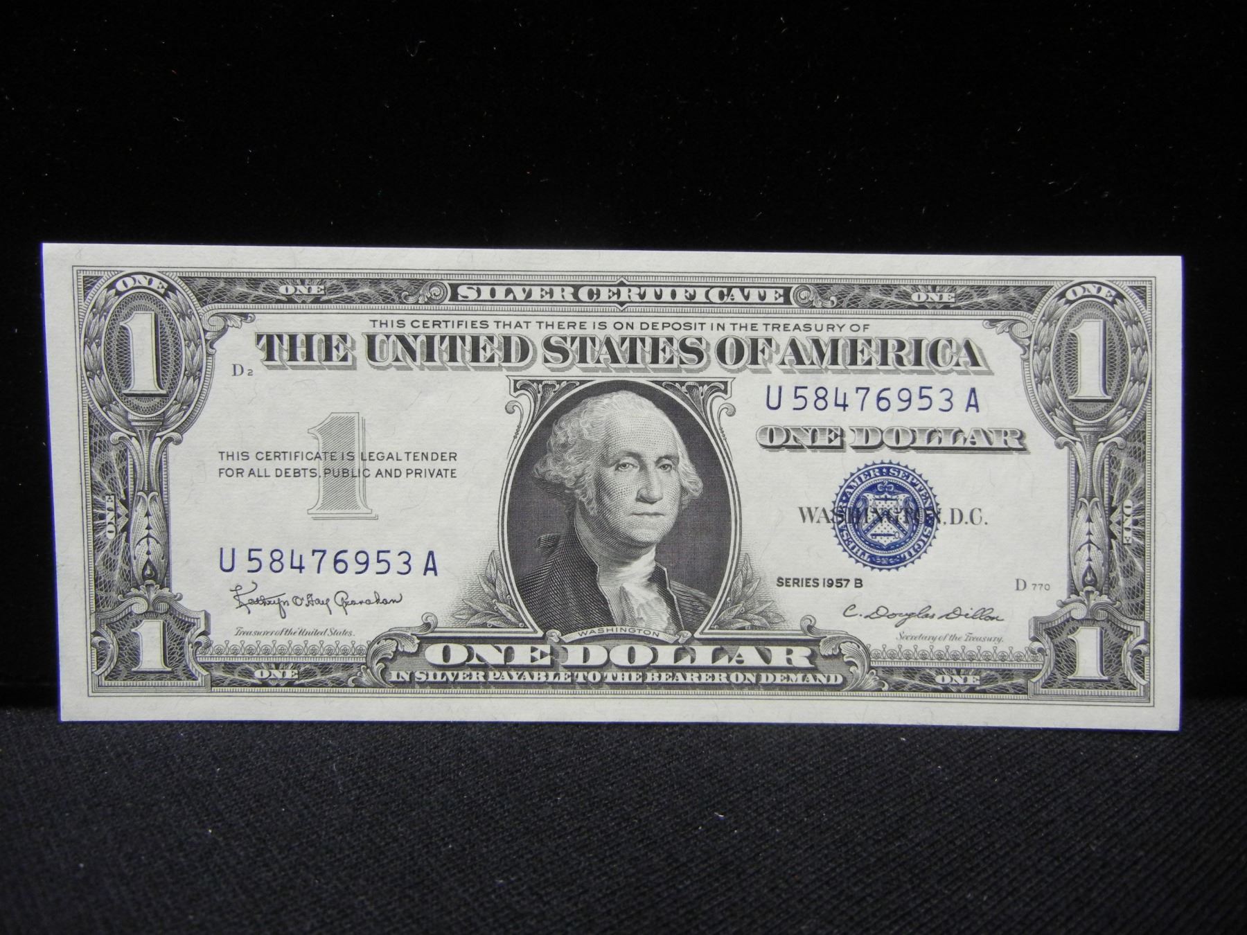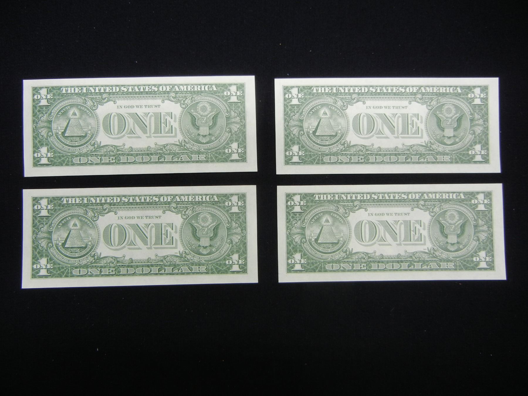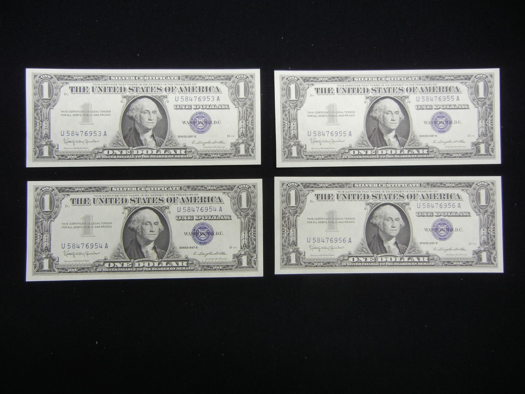 (4) 1957 B $1 Silver Certificates. Consecutive Serial #s. GEM CU.