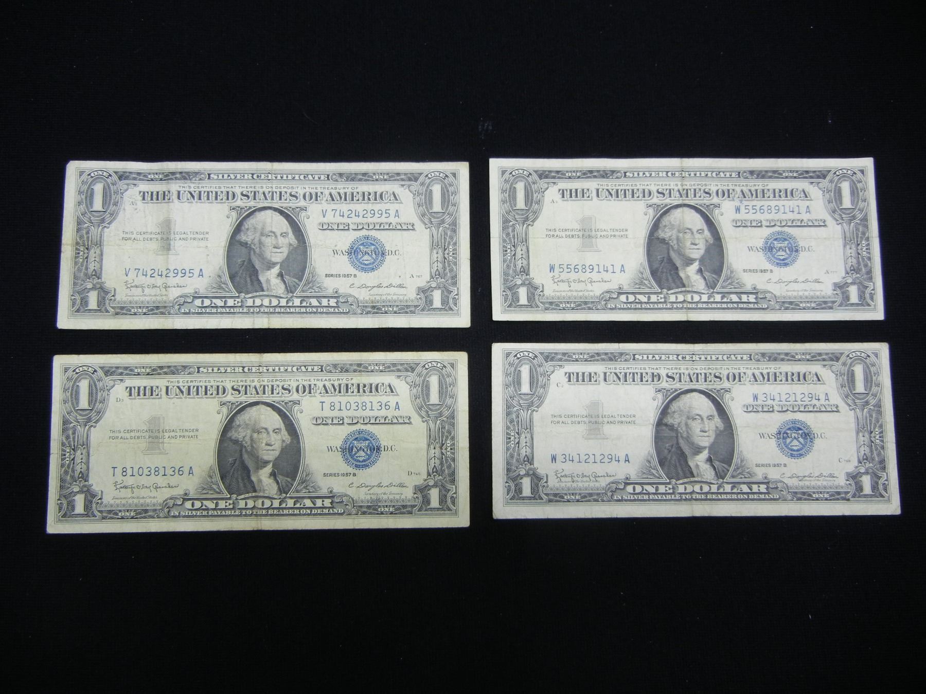 (4) 1957 B One Dollar Silver Certificates