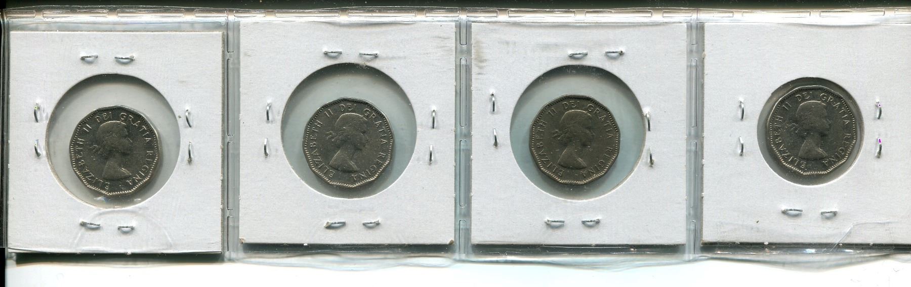 4-1957 Bug Tail Beaver Nickels (Scarce),4-Canadian 5 cent coins,Queen Elizabeth II