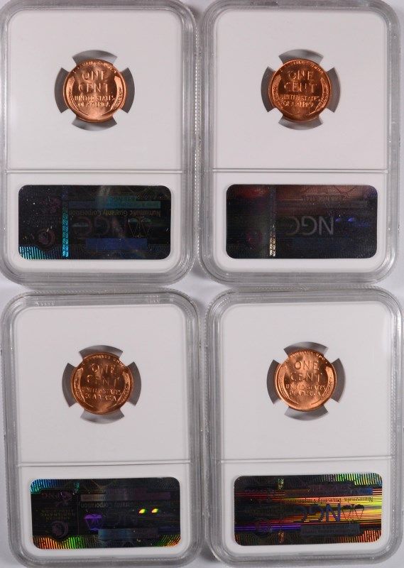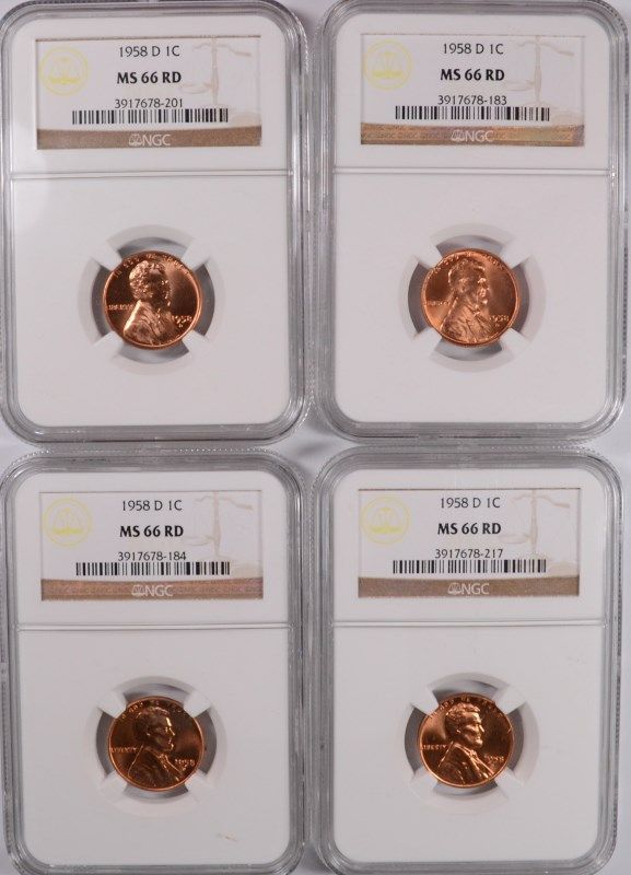 ( 4 ) 1958-D LINCOLN CENTS, NGC MS-66 RED GEMS!