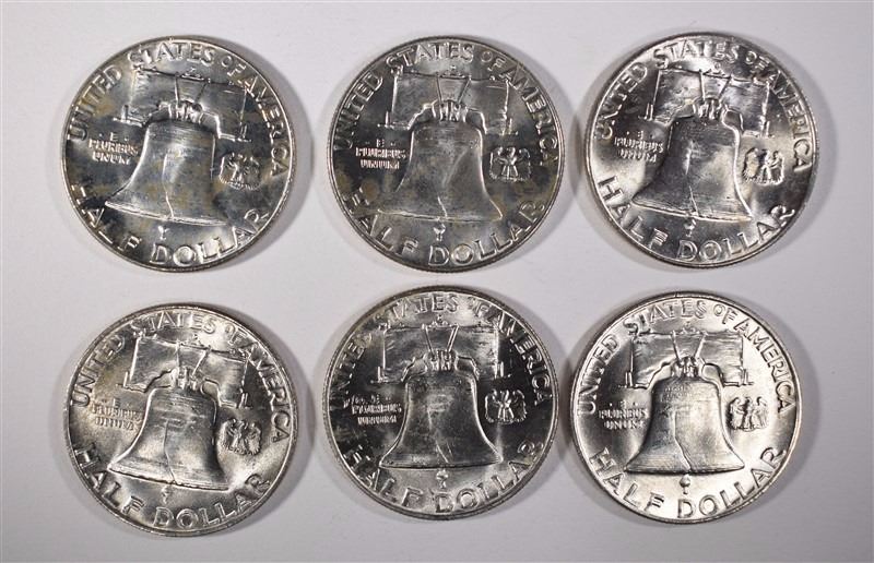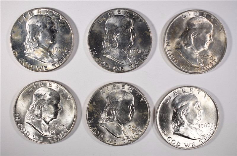 4-1960-D & 2-61-D BU FRANKLIN HALF DOLLARS