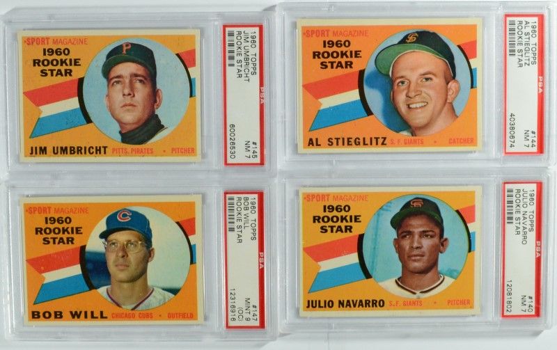 4 - 1960 TOPPS #140,144,145,147. PSA 1-MINT 9 (OC) rest NM 7.