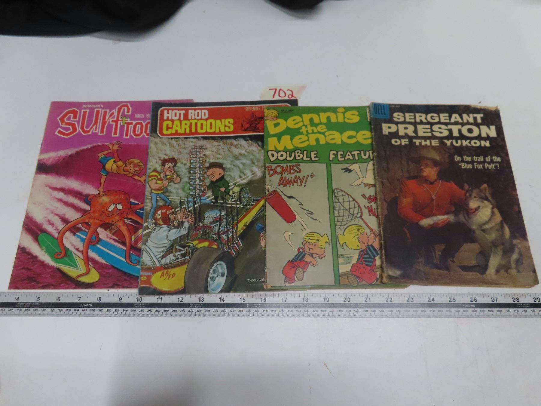 4 - 1960's Comic Books - "Hot Rod Cartoons," "Surftoons," "Sergeant Preston of the Yukon," "Dennis the Menace"