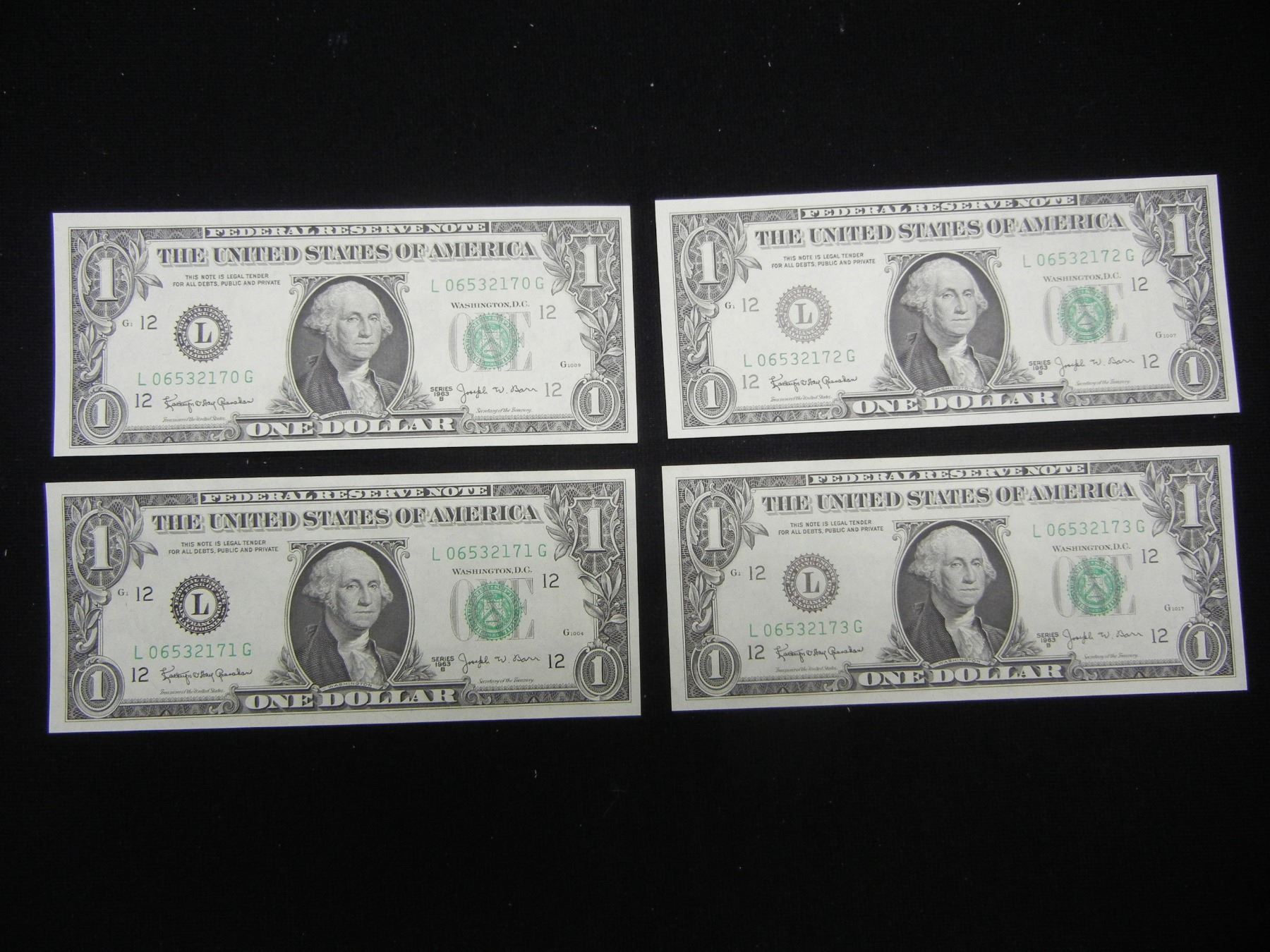 (4) 1963 B Federal Reserve notes. The famous “BARR” notes. Consecutive Serial #s. GEM CU.